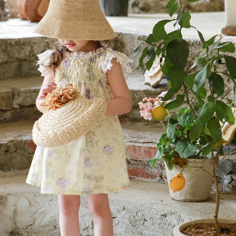 Princess Dress for Girls Infant Toddler 2-10 Years Lace Flower Cotton Dress with Puff Sleeve Ruffle 2-10 Years Clothes for Kids