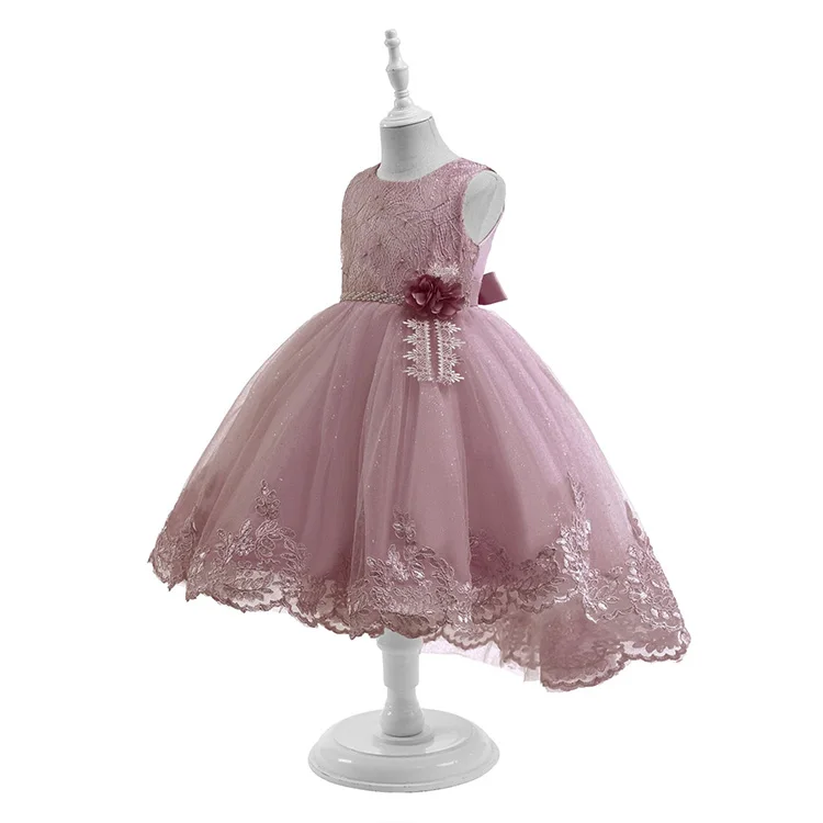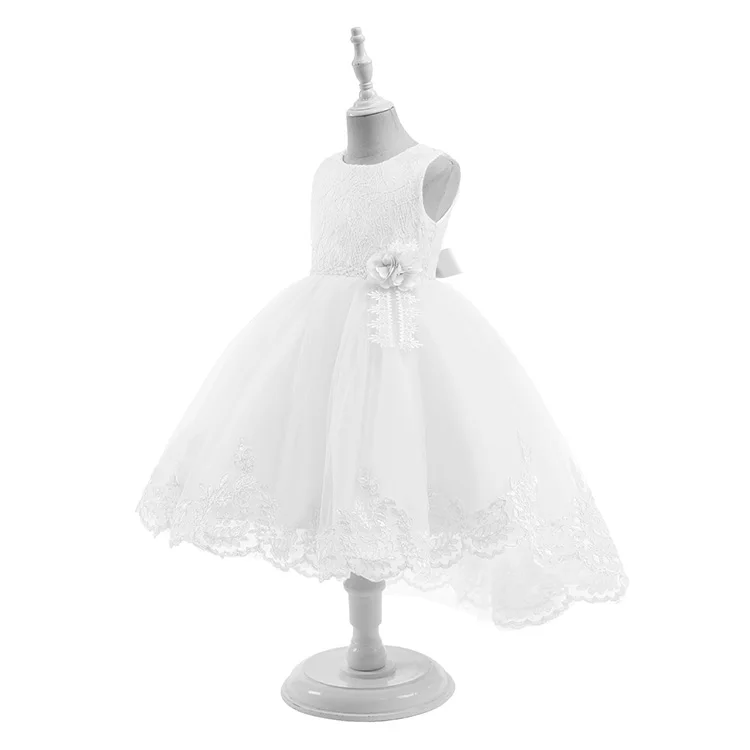 Children's Summer Sleeveless Flower Waist Dress Fashionable Princess Tail Trailing for Birthday Evening Floral Clothes for Kids