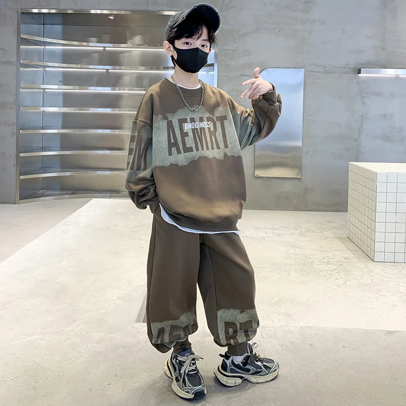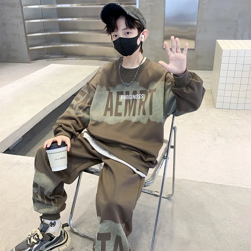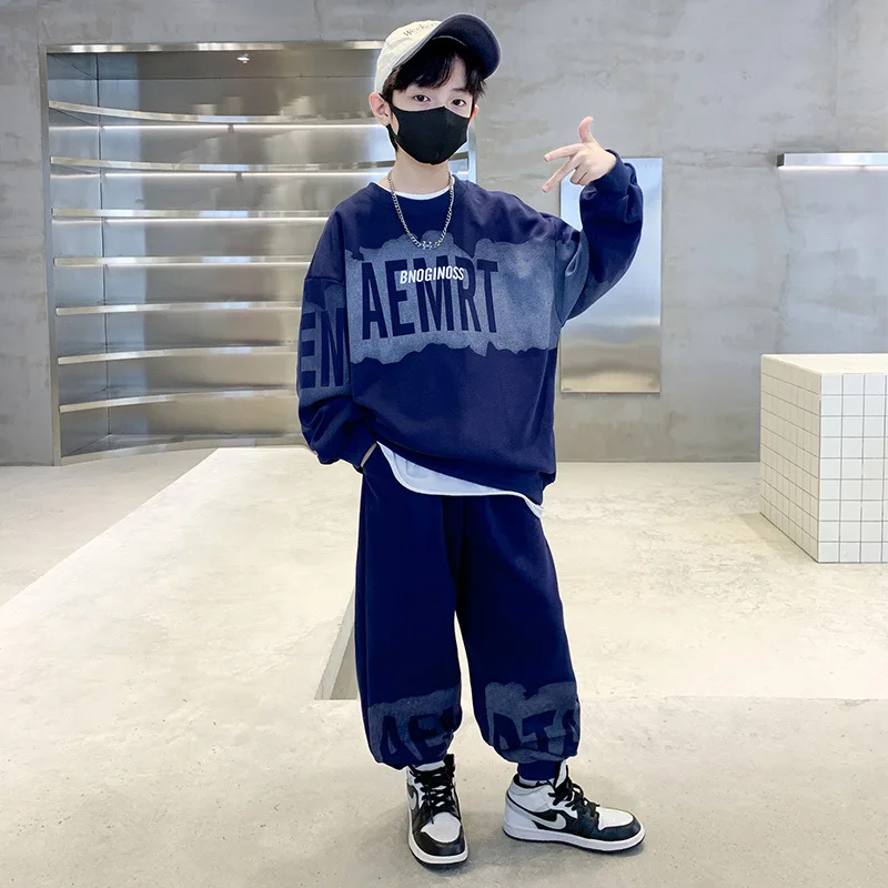Autumn New Sportswear Two-Piece Set Boys Korean-Style High Cotton Long Sweatshirt Suit Trendy Loose Casual Clothes for Kids