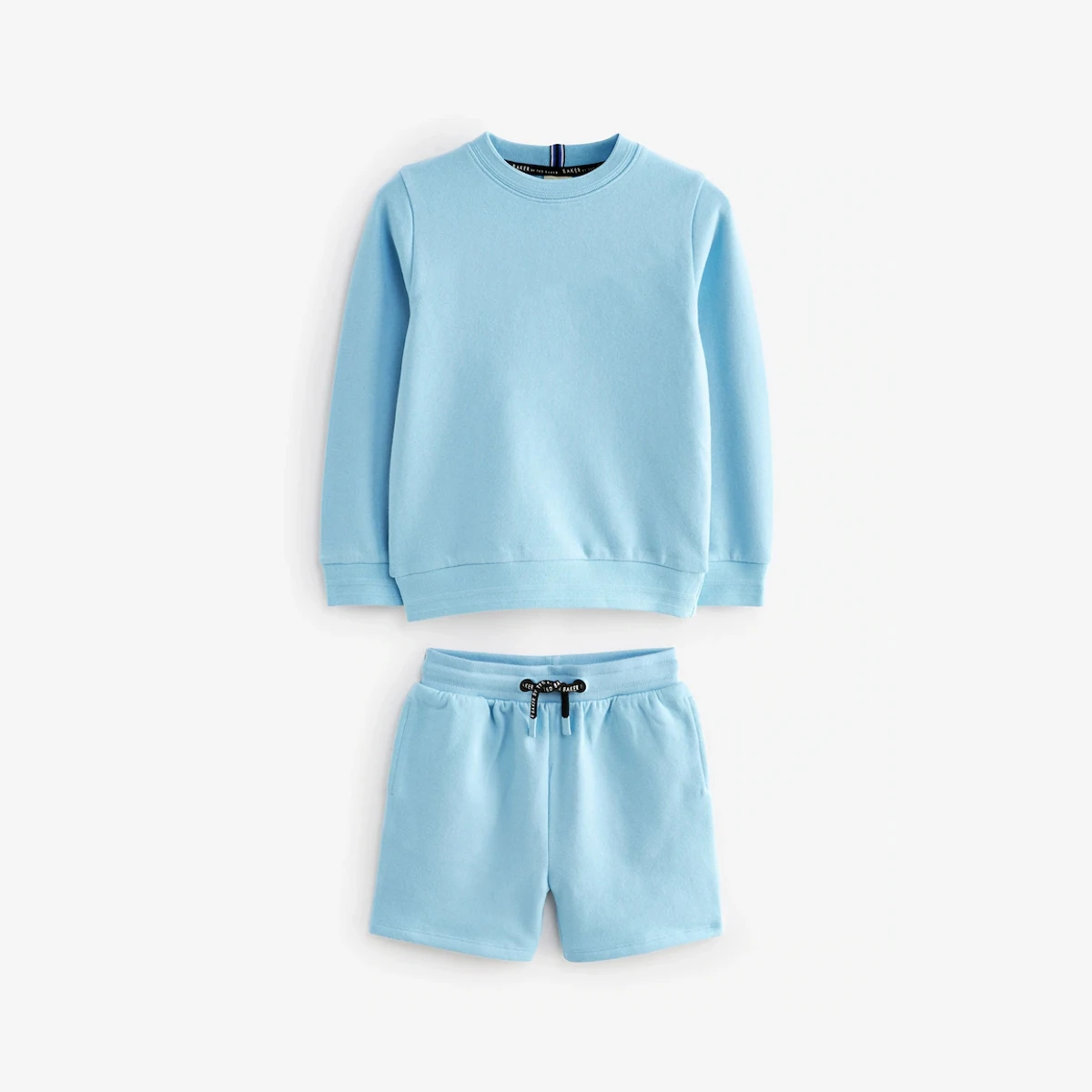 Custom logo Kids Clothing Summer Children Clothes Boys Girls Essentials French Terry Two Piece Sweatshirt Kids Short Sets