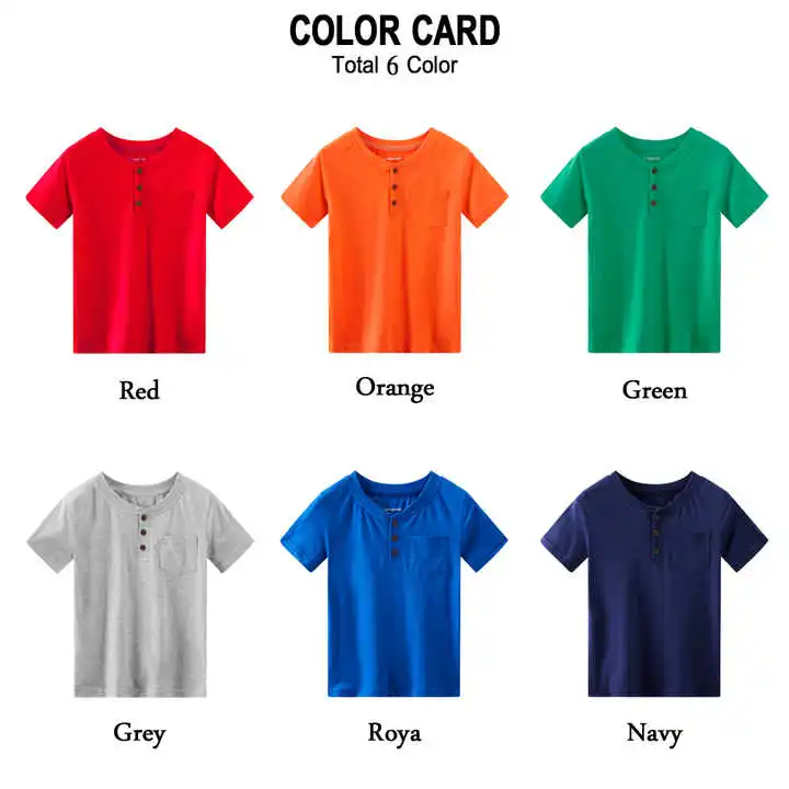 Custom Logo Kids Henley Tee Casual Short Sleeve Soft Light Weight 100% Cotton Boys Henley T-Shirt With Front Pocket