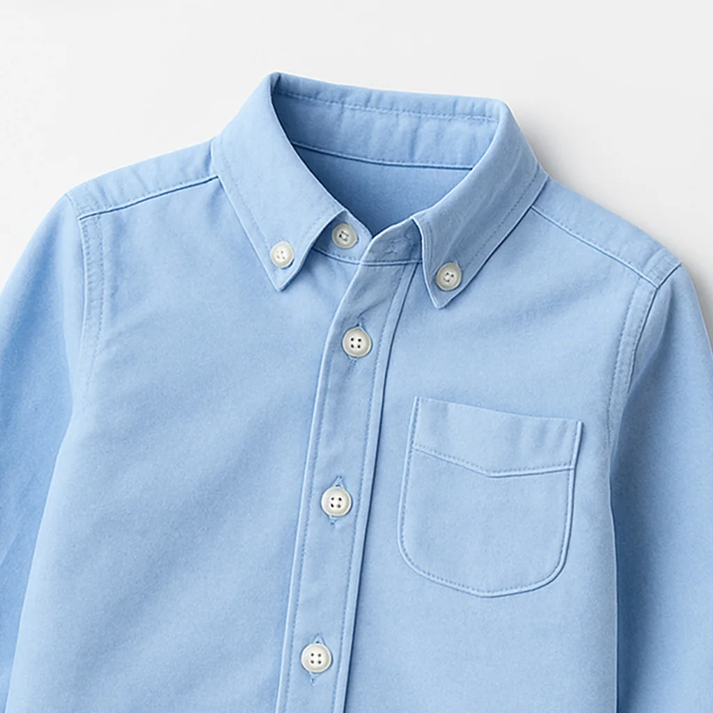 Custom Logo Kids Plain Oxford Shirt for Boys 2-10Y Button Down Long Sleeve Shirt School Formal Wear Dress Shirts for Kids