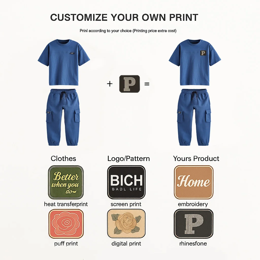 Custom Children's Clothes Summer Baby Boys Cotton T-shirt & Jogger Pants 2-Piece Outfit Set Kids Clothing Wholesale