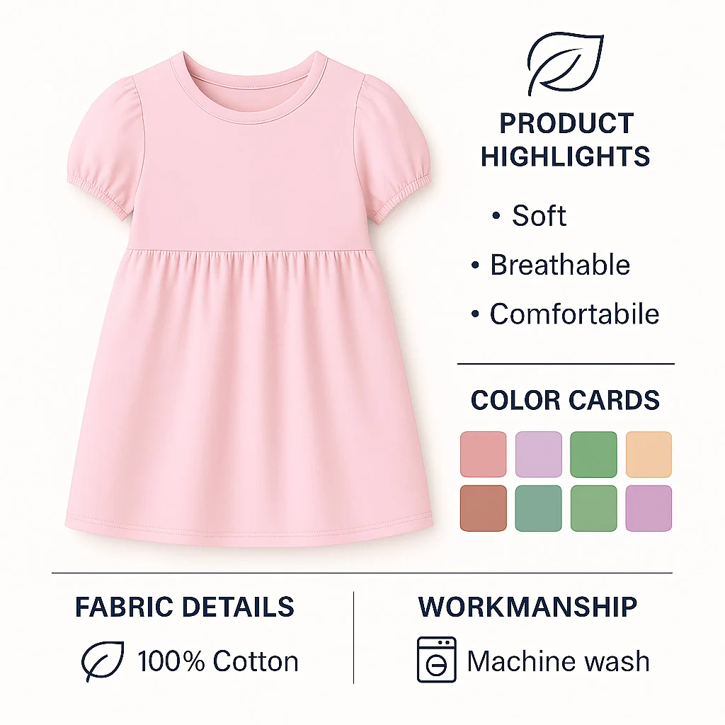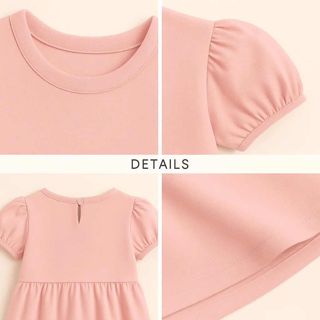 Wholesale Girls Puff Sleeve Dresses Solid Color Casual Kids Party Dress OEM ODM Soft Cotton Toddler Girls Summer Wear