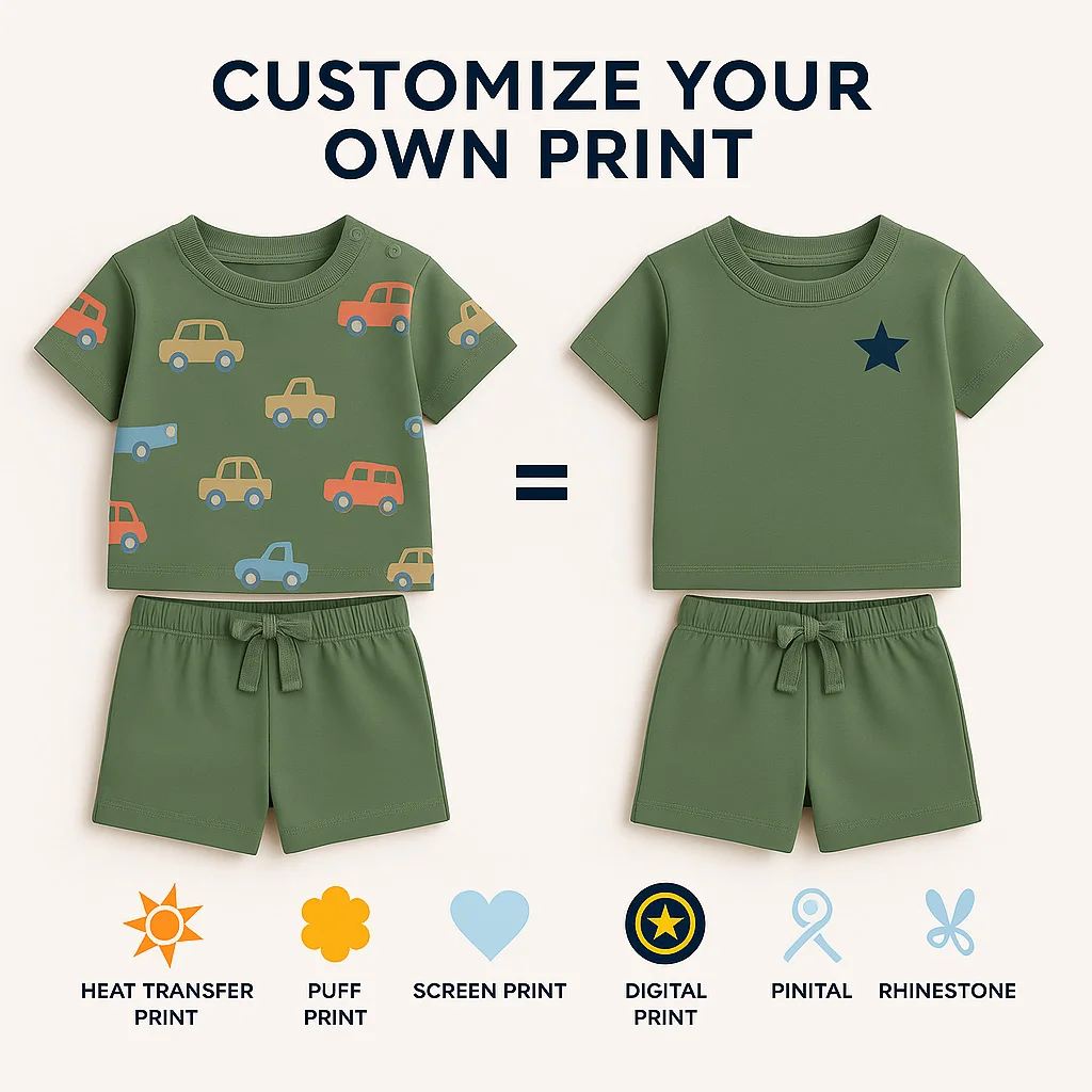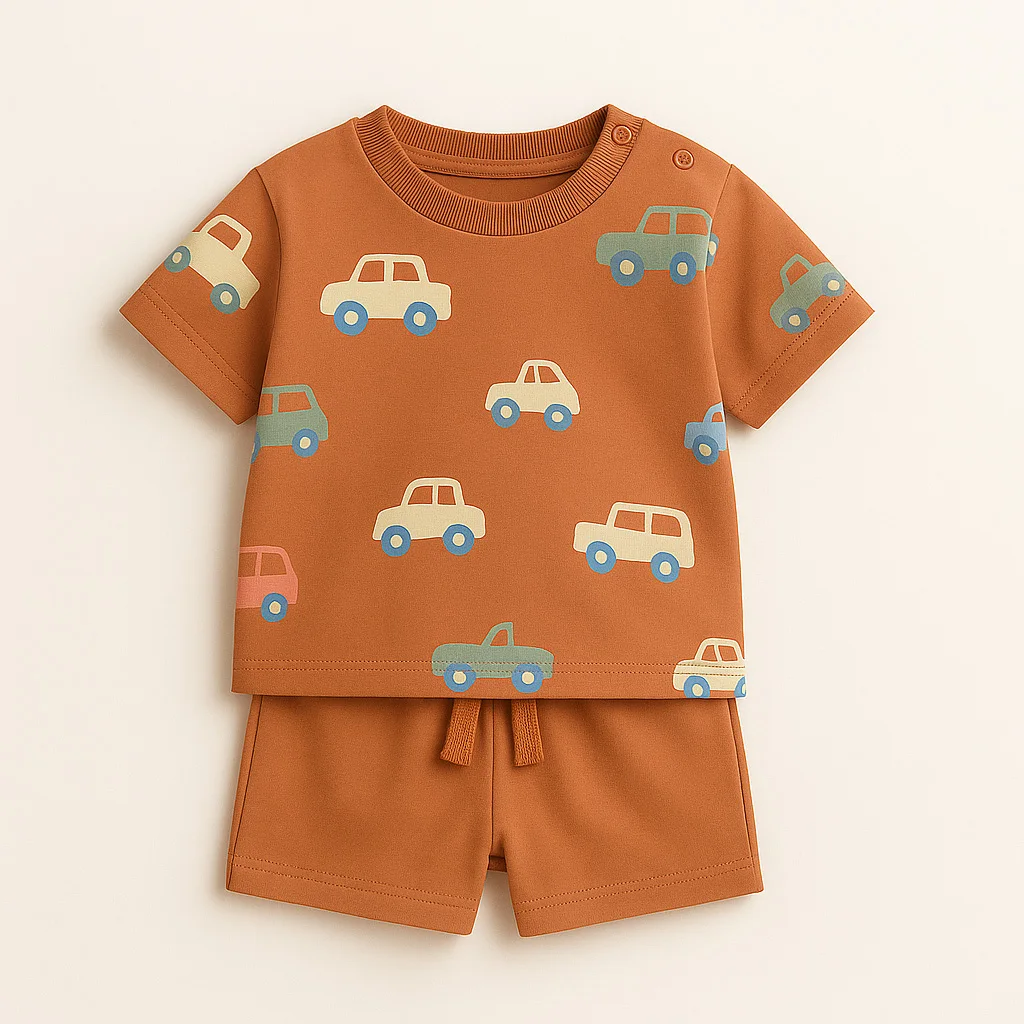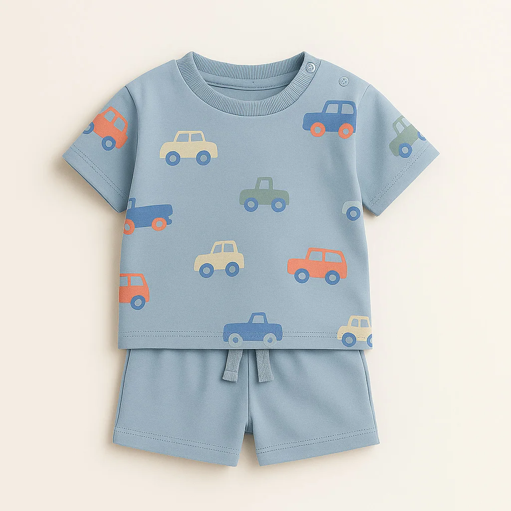 Private Label Boys T-Shirt and Shorts Set Casual Summer Baby Boys Clothing Sets Cartoon Car Print Outfit Cotton Kids Wear