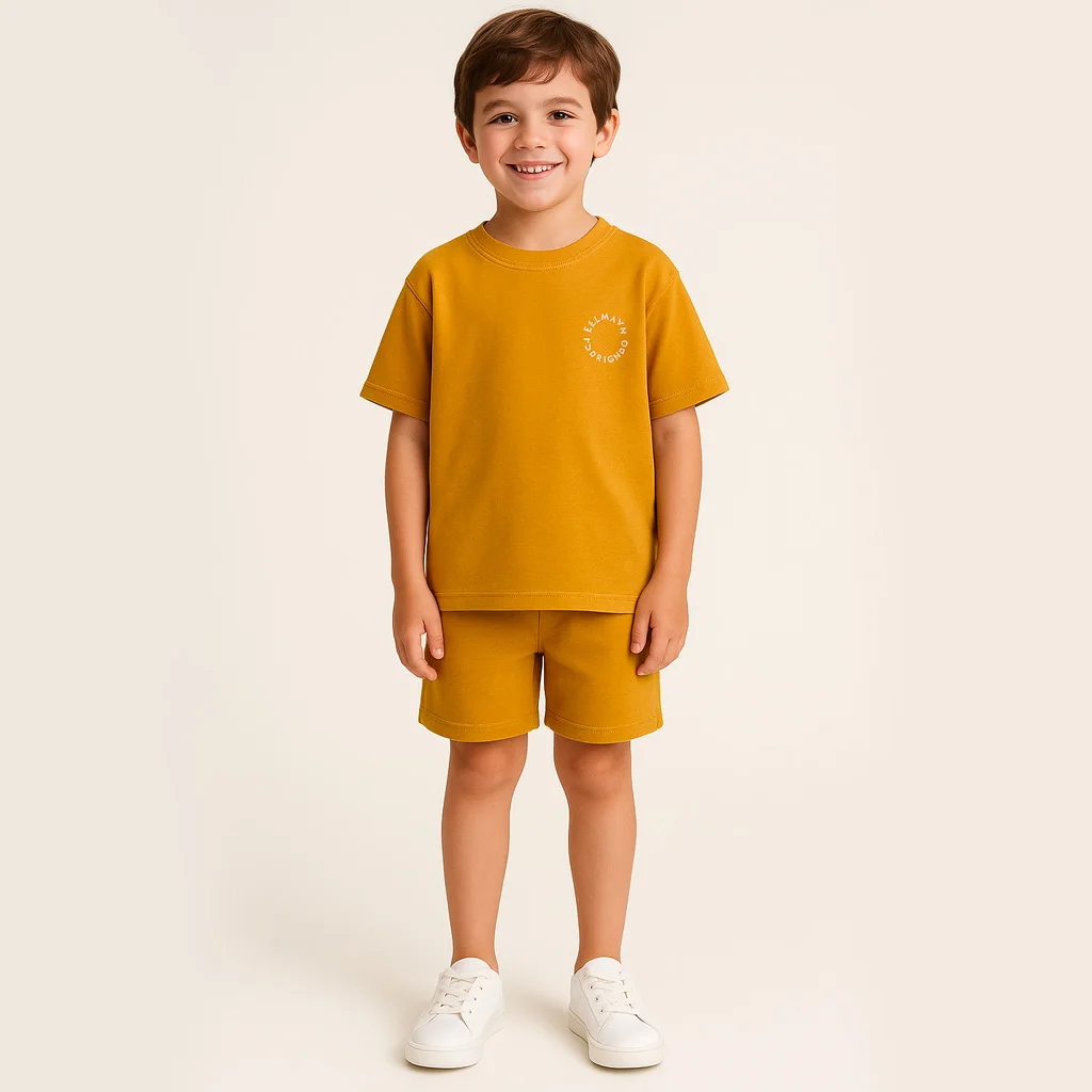 OEM/ODM Custom Kids Summer Outfit Set Short Sleeve T-Shirt & Shorts Soft Knit Fabric Printing Embroidery Casual Everyday Wear