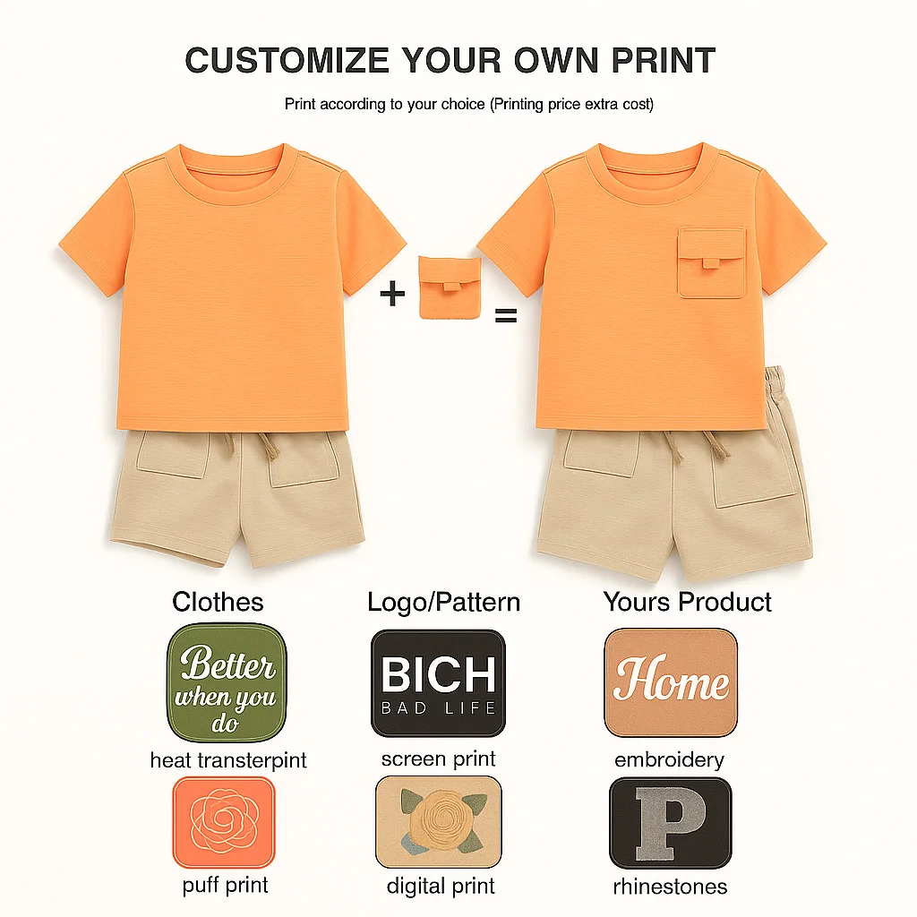 Custom Logo Kids Apparel Clothing Set Cotton Short Sleeve T-Shirt and Shorts Casual 2-Piece Outfit Children's Clothing Sets