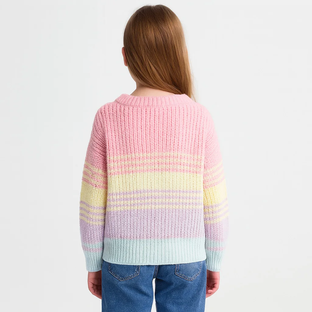 Custom Kids Gradient Stripe Knit Sweater Cozy Acrylic Wool Blend Winter for Girls Pullover Cardigan OEM & ODM Wholesale