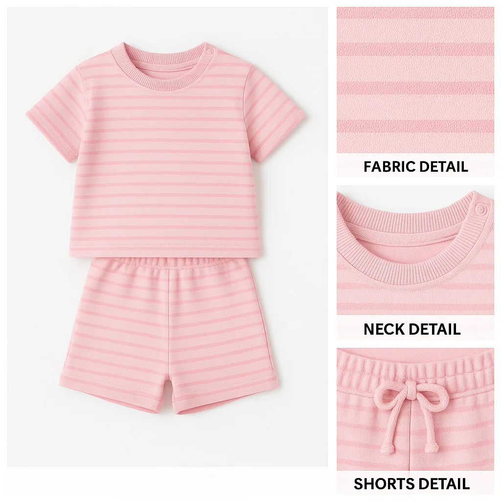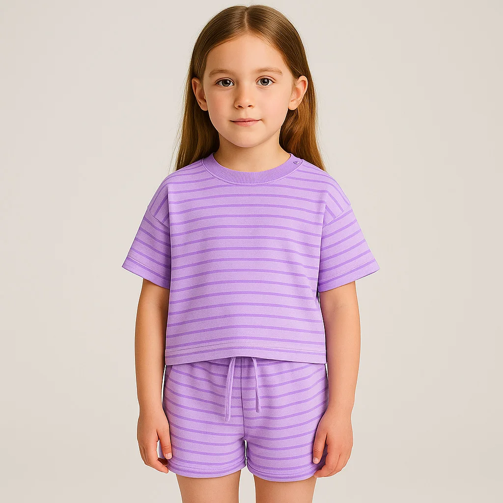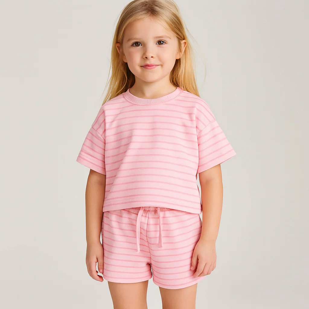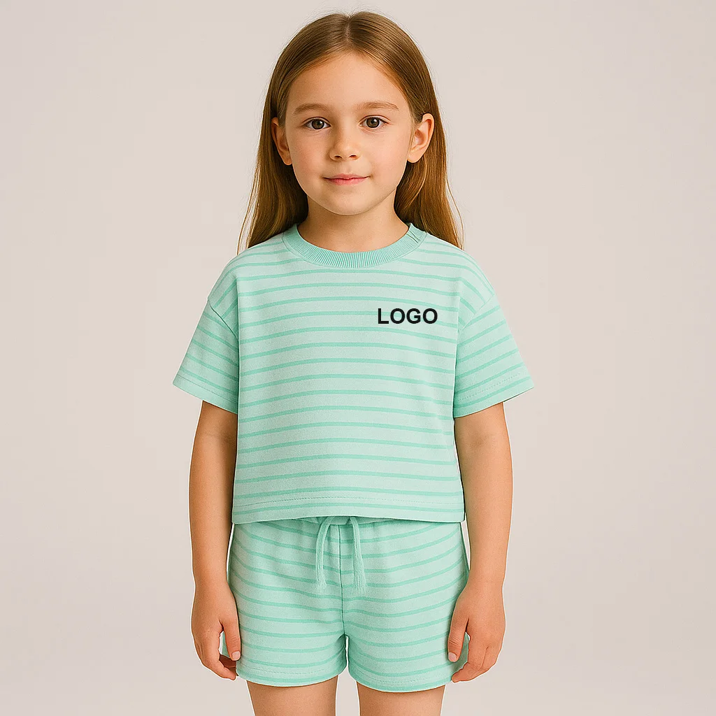 OEM Kids Summer Clothing Set Mint Green Striped T-Shirt and Shorts for Girls Casual Wear Girls Summer Outfits Wholesale Supplier