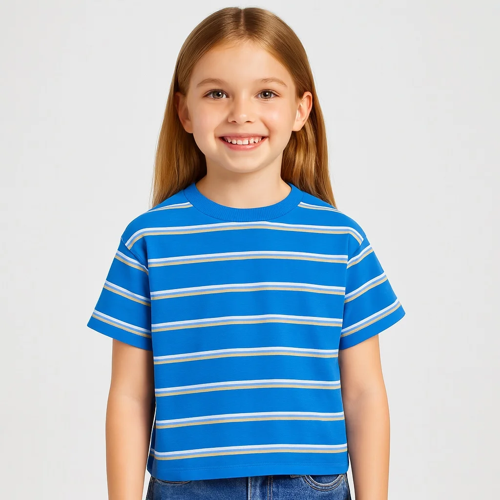 Custom Kids Striped T-shirt OEM/ODM Short Sleeve Casual Summer Girl Tops Soft Cotton T-shirts for Girls Kids Wear Supplier