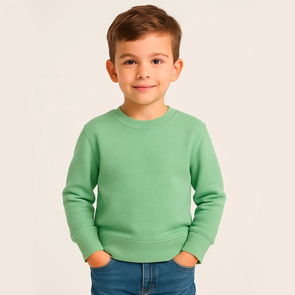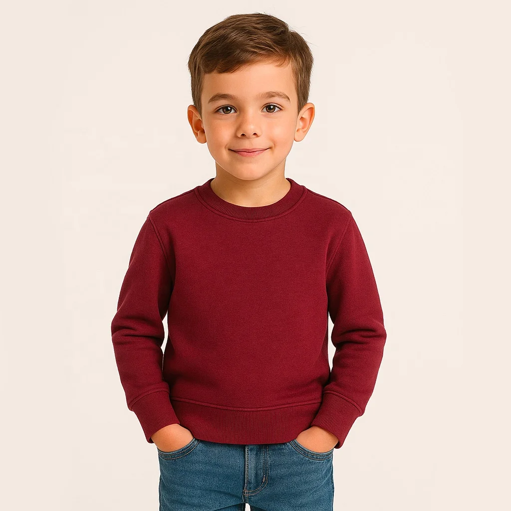 Wholesale Kids Basic Sweatshirt Soft Cotton Fleece Long Sleeve Children Crewneck Pullover OEM ODM Custom Logo Printing