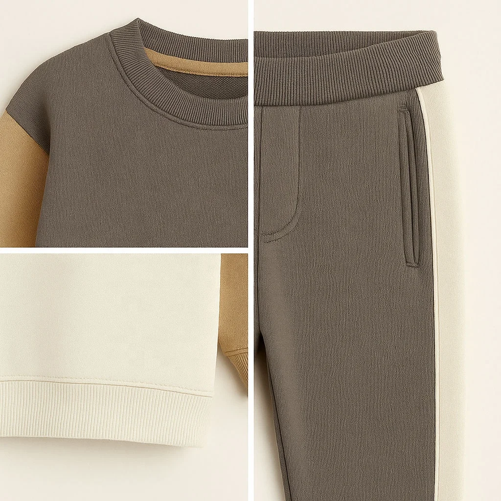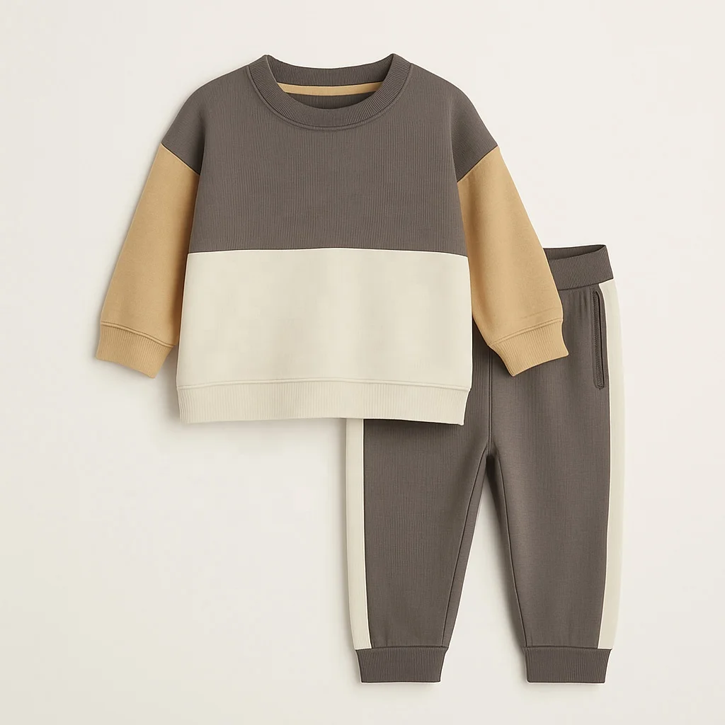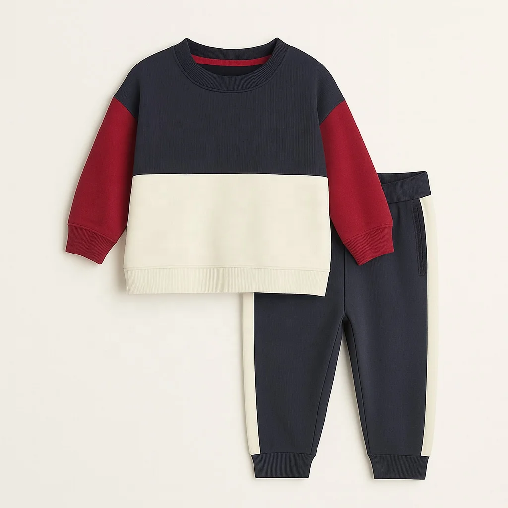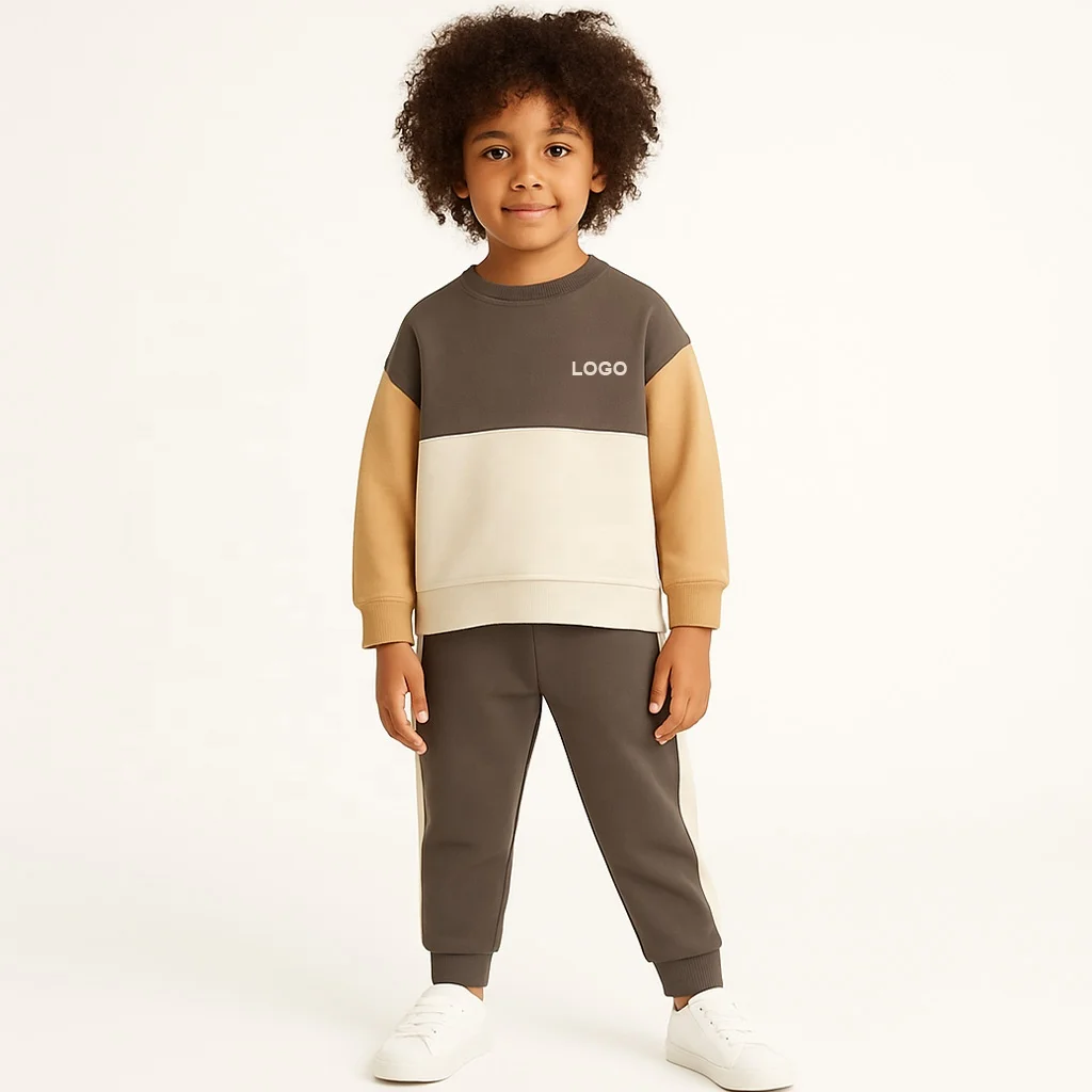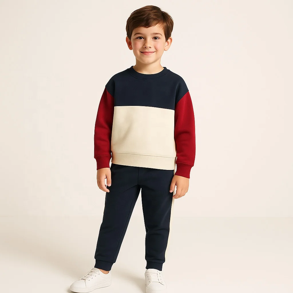 Kids Color Block Sweatshirt and Jogger Pants Set 2-Piece Winter Boys Tracksuit Outfit OEM/ODM Factory Wholesale