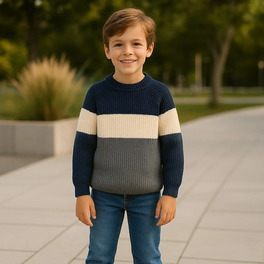 Factory Direct Boys Knitted Sweaters OEM/ODM Custom Kids Pullover Color Block Autumn Winter Wholesale Children Clothing
