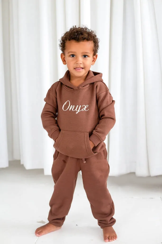 OEM Kids Hoodie Set Personalized Embroidered Hoodie & Jogger Outfit for Boys and Girls Cotton Fleece Tracksuit for Autumn Winter