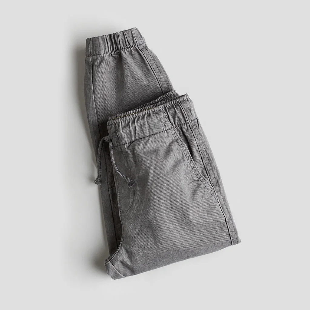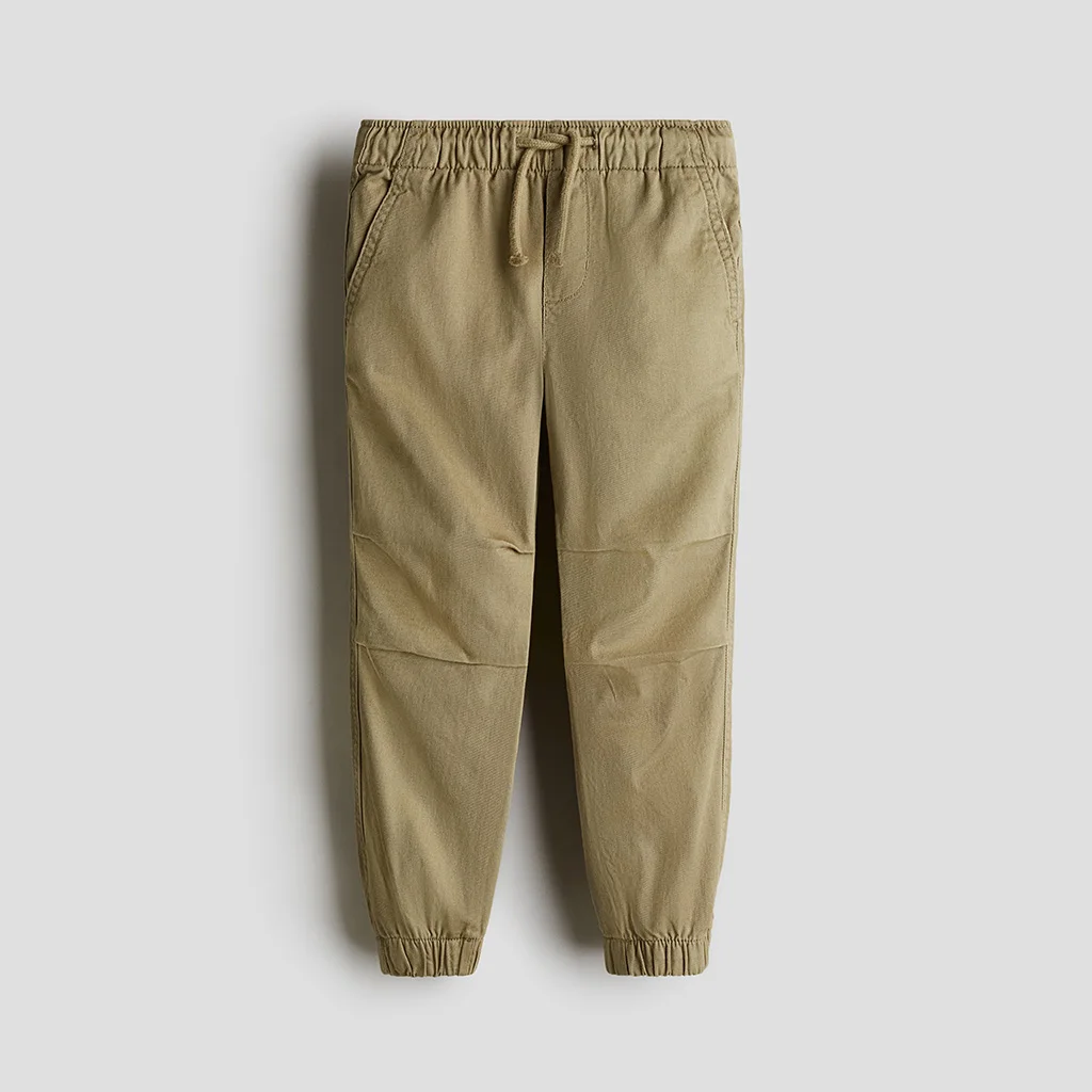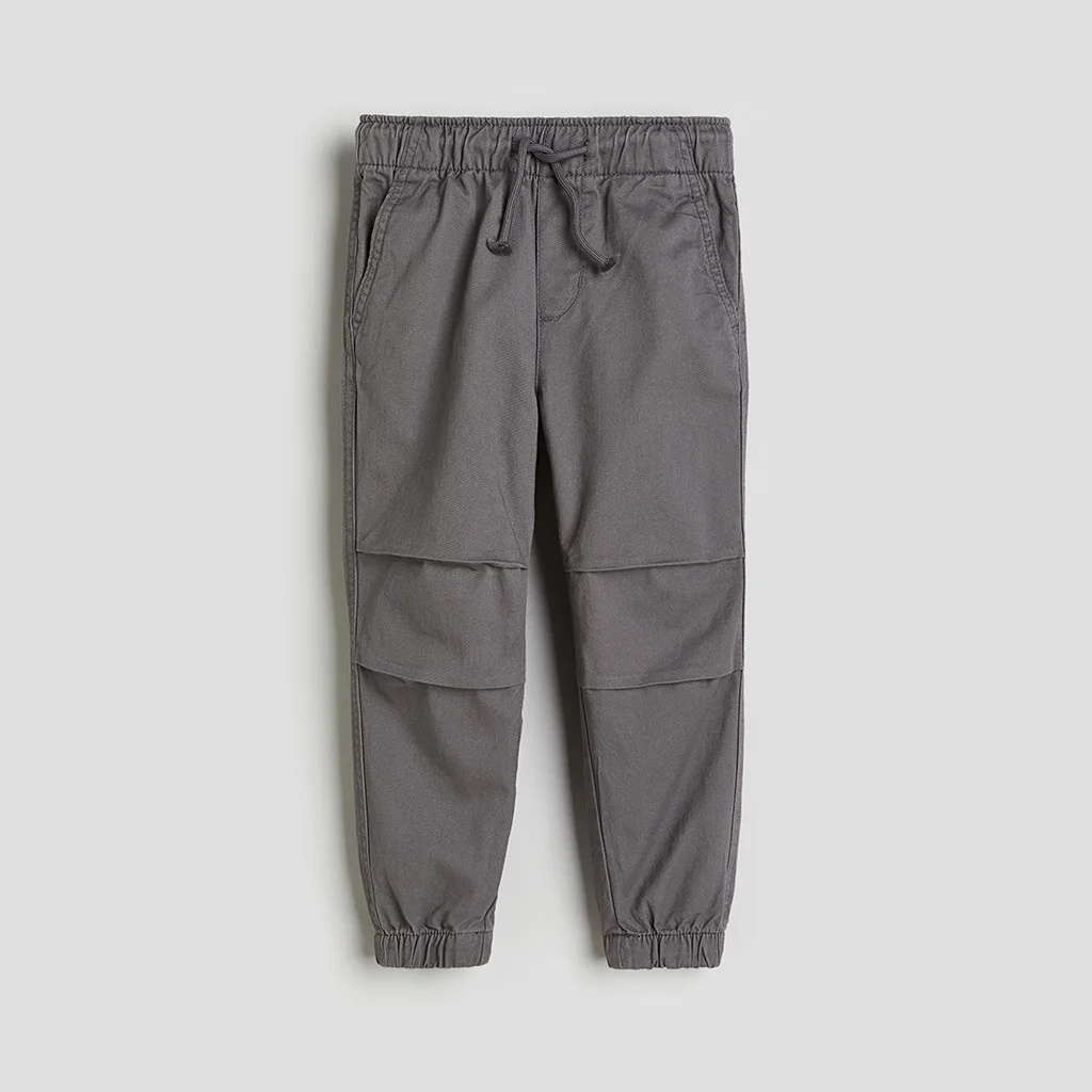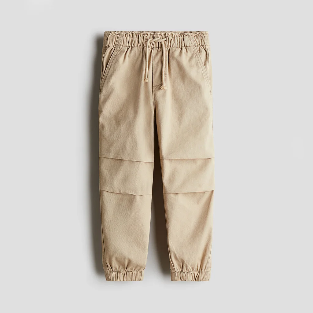 Custom Boys Cotton Jogger Pants with Elastic Waist and Drawstring Kids Casual Trousers with Knee Panel Stitching and Cuffed Hem