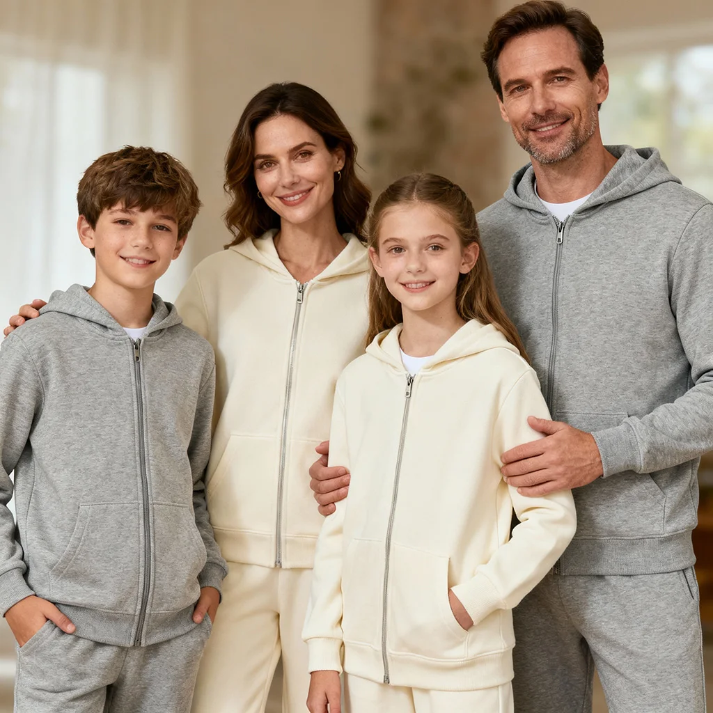 Custom logo Design Full Zip Casual Pullover Hoodies Jackets Soft Touch Matching 2 Piece Sets Outdoor Casual 2 Piece Set for Boys