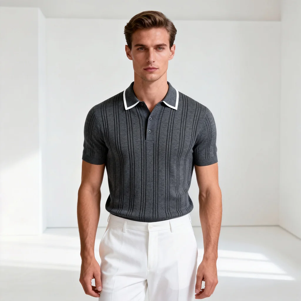 OEM ODM Tailored Fit Knit Polo Shirts Button-Down Collar Short Sleeve Business Casual Solid Ribbed Jersey Cotton Polo Outfit Set