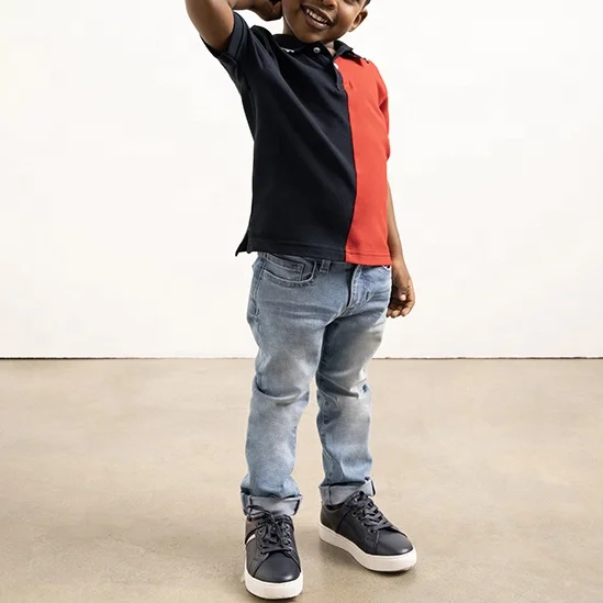 Customizable Kids Boy Polo T Shirt High Quality 100% Cotton Knitted Casual Style with Custom Embroidered Logo and Color Blocks