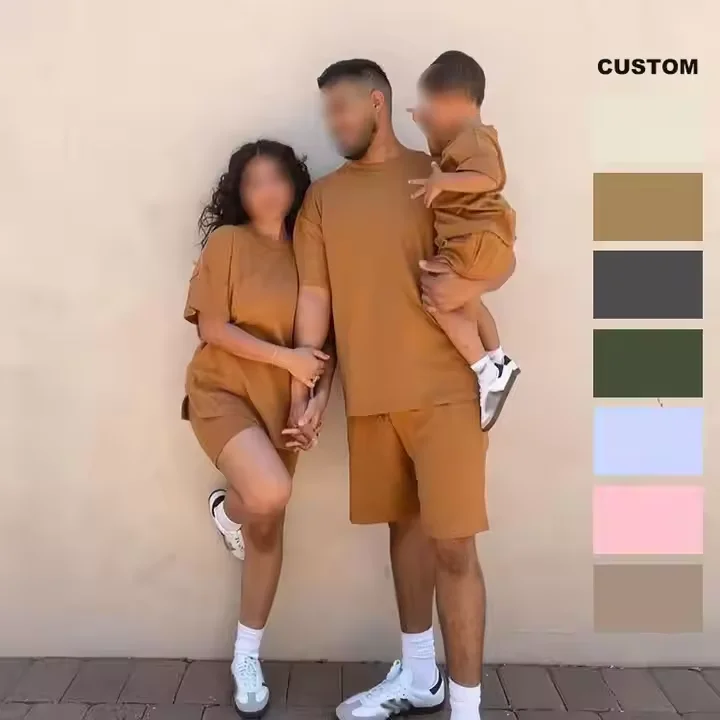 Summer Casual Cotton Family Outfits Mommy Dad Me Drop Shoulder T-Shirt Short Two Piece Set Plus Size Custom Matching Outfits