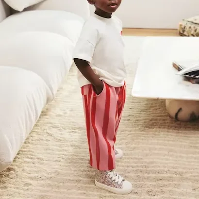 2026 Custom Children Clothing Red Heart Short Sleeve 100% Cotton T-Shirt and Wide Stripe Trousers Set Girls Clothing Sets