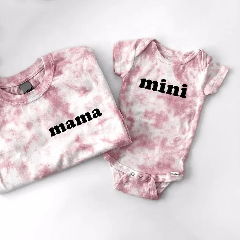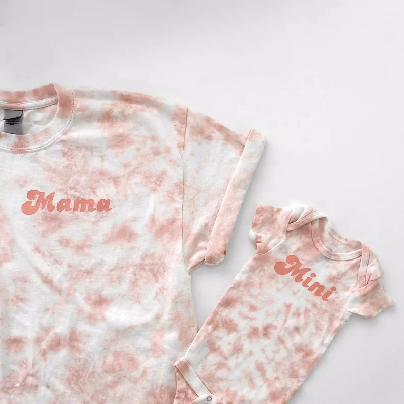 Wholesale Summer Women Tie Dye T Shirt Baby Onesie Romper Family Matching Outfits Mommy and Baby Outfits