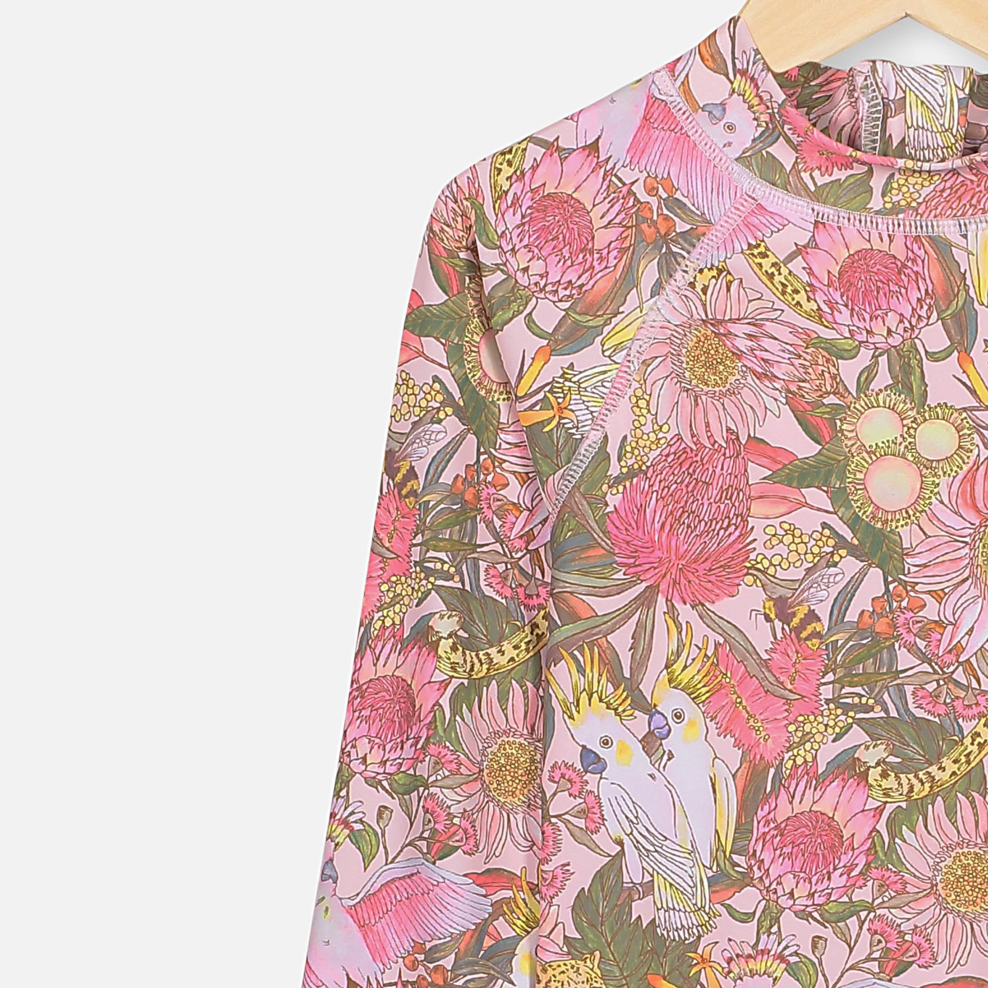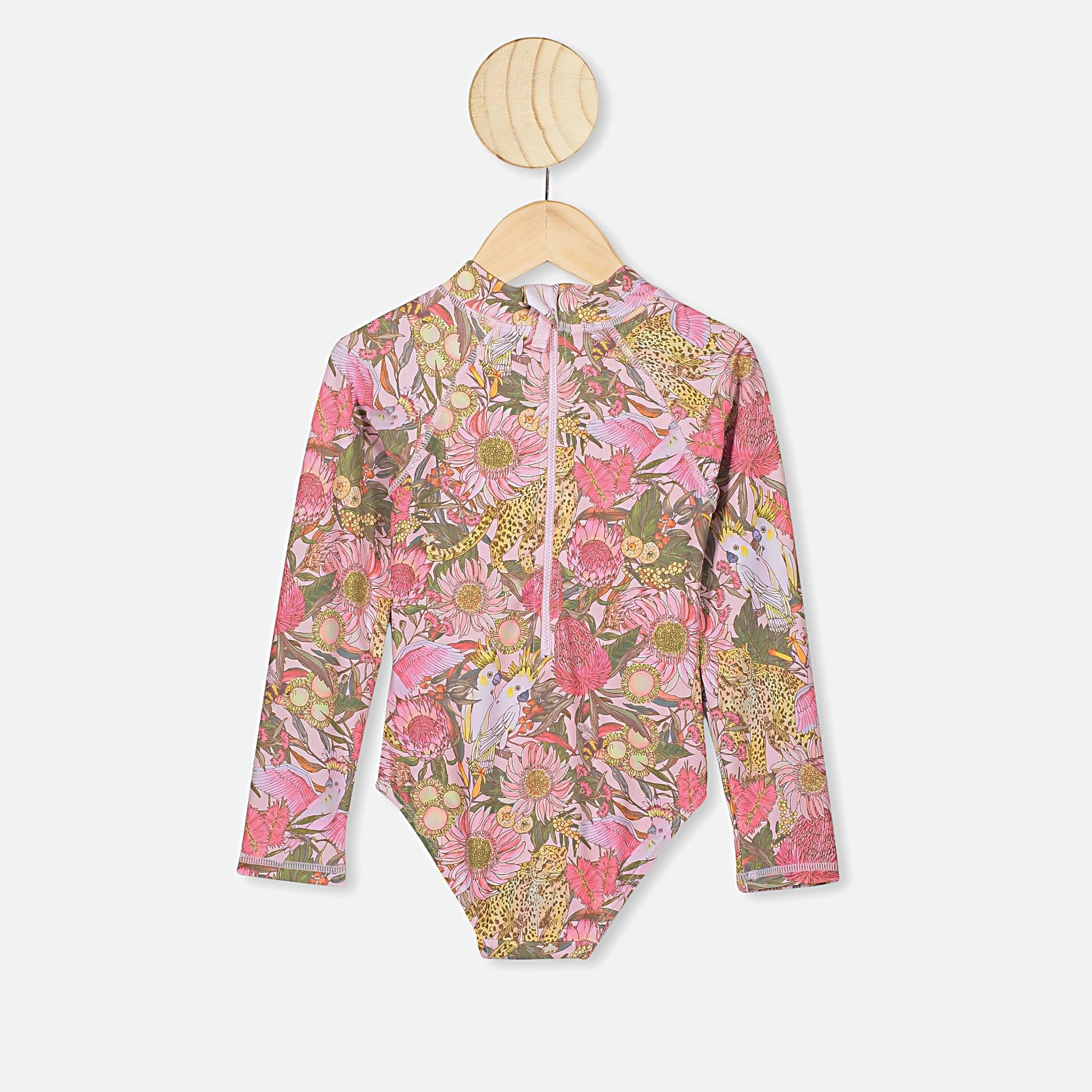 Custom Summer Kids Long Sleeve One-Piece Bikini Beachsuit Hawaii Theme Flower Print Baby Girls' Swimwear for Children