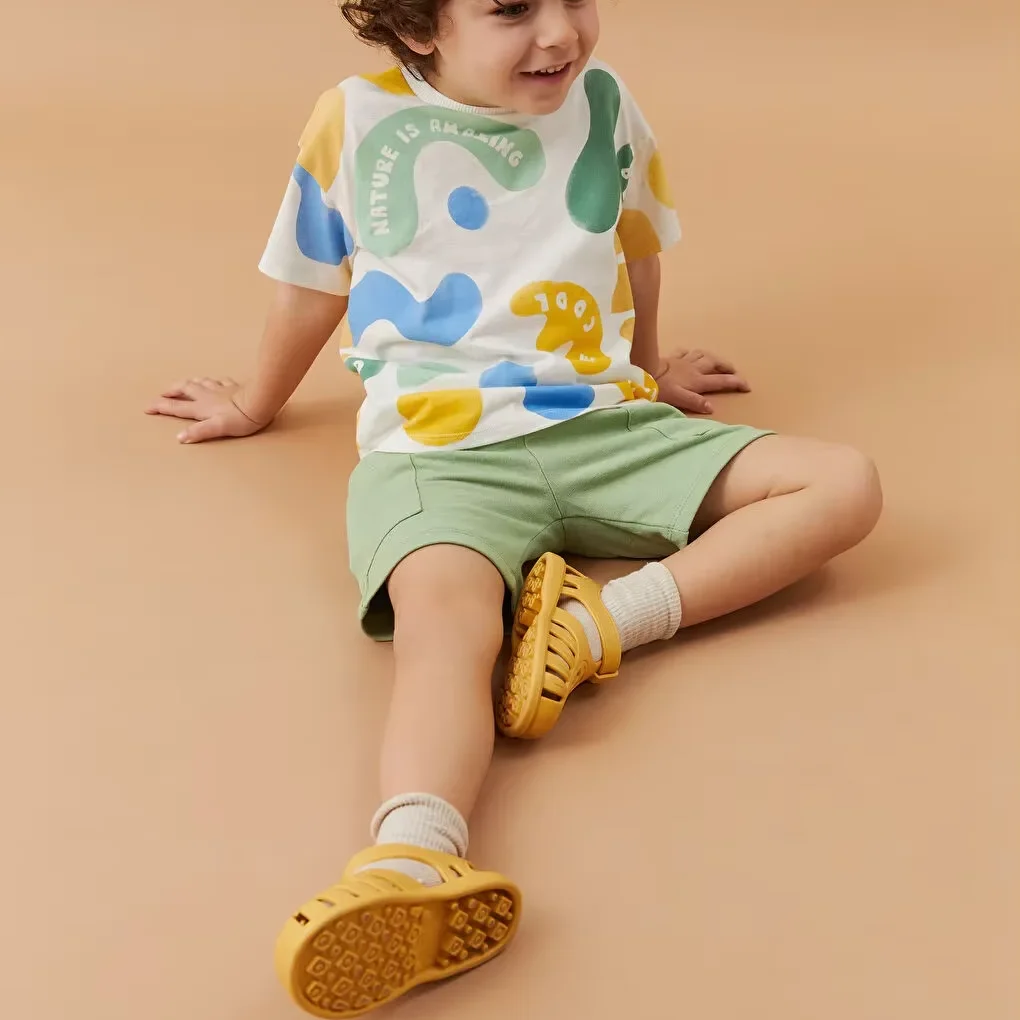 OEM Kids Unisex Boys Girl Summer Knitted Cotton Oversized T-shirt Colorful and Shorts Breathable Casual Kids Clothes Set