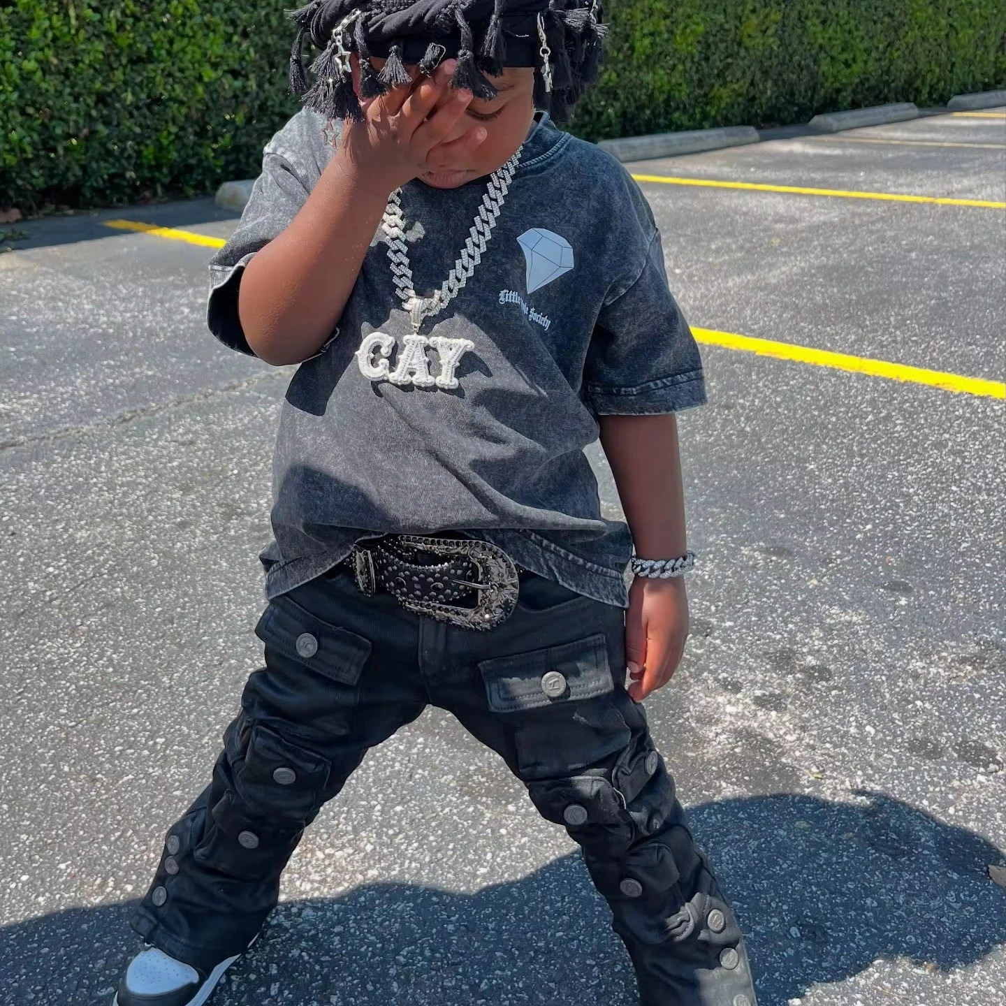 Vintage Acid-Wash Custom Knit Outfit 100% Cotton Toddler Baby Sweatpants T-shirt Heavy Weight Tracksuit Clothing Sets