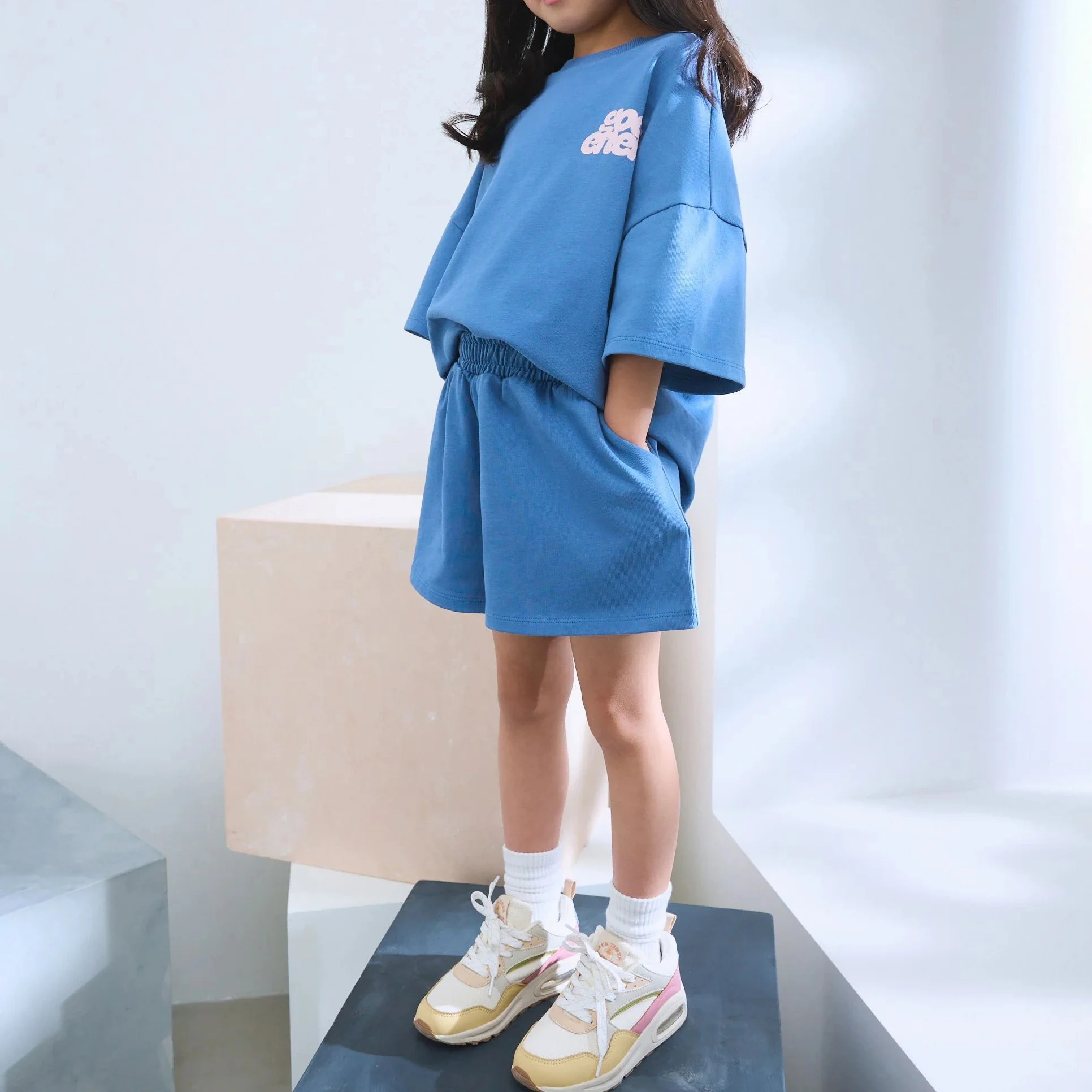 2026 Summer Custom Clothing Print Letters 3D Puff Print Oversize T Shirt and Shorts Set Kids Girls Clothing Sets