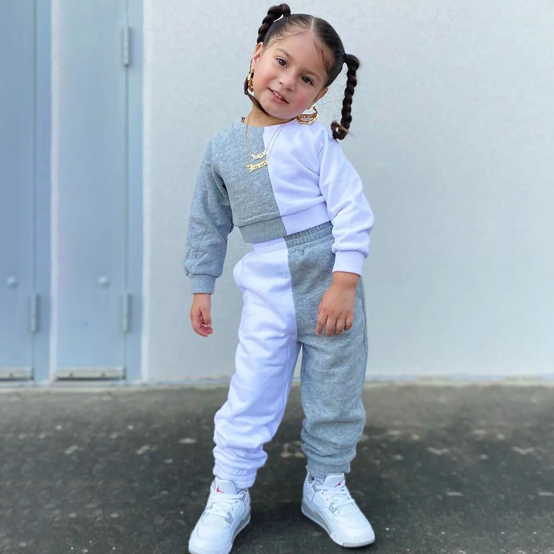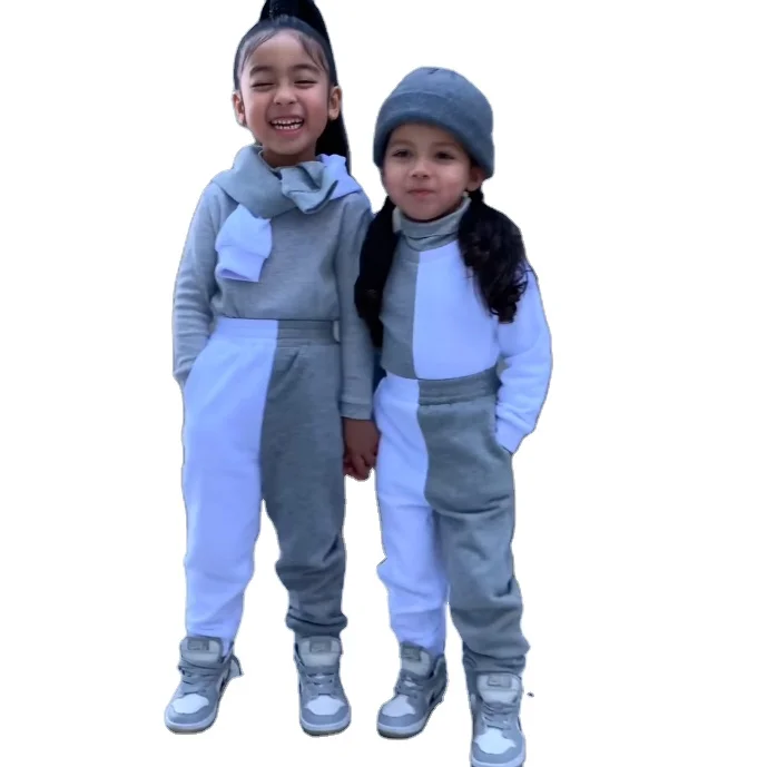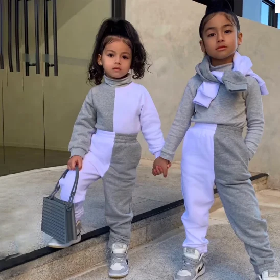 High-quality Kids Outfits Long Sleeve and Pants Jogger Set Color Block Winter Set Kids Girls Clothing Sets