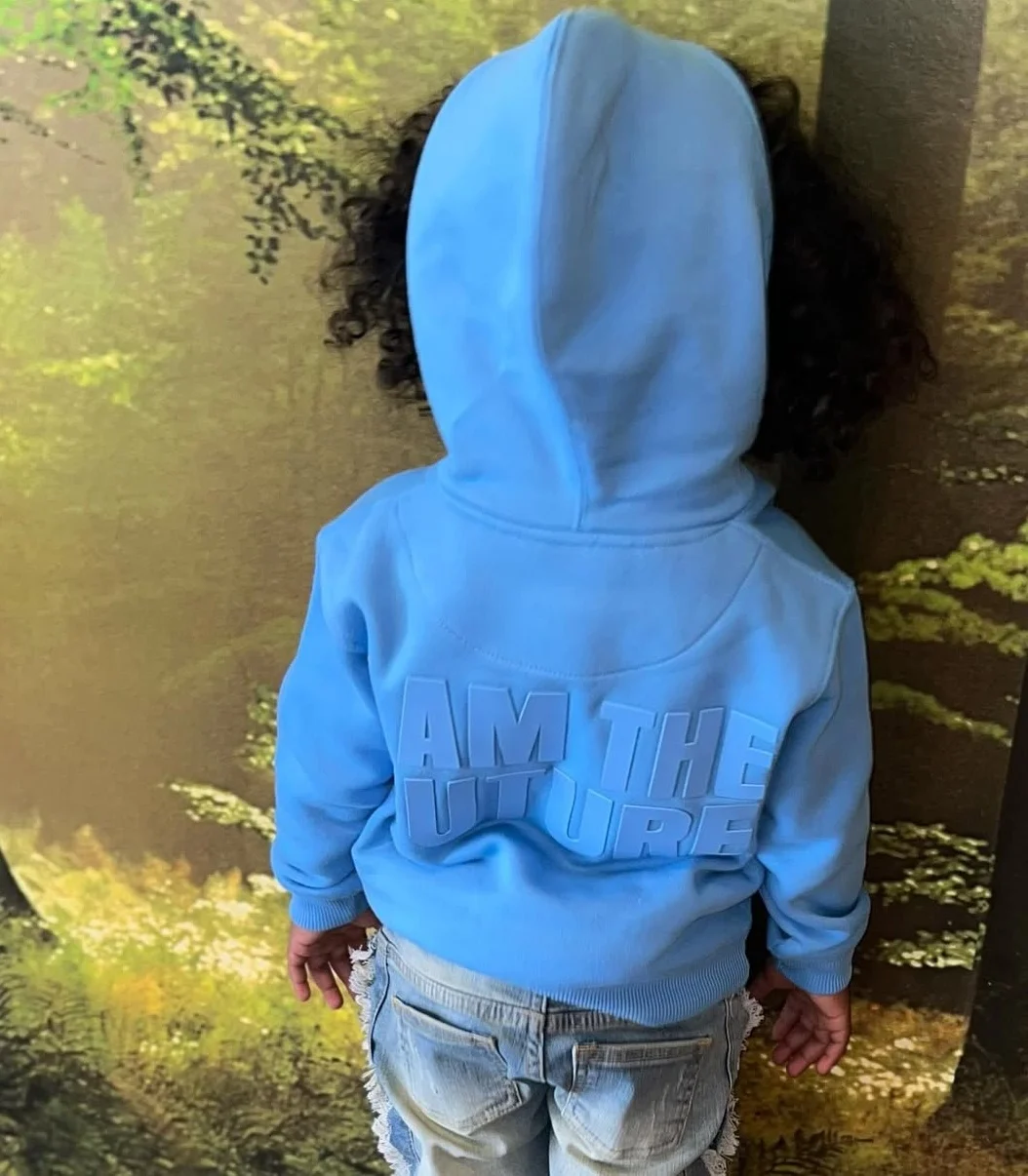 Wholesale Luxury Custom 500 GSM Heavyweight Oversized Sweatshirts Embossed Hoodie and Denim Pants Kids Tracksuit