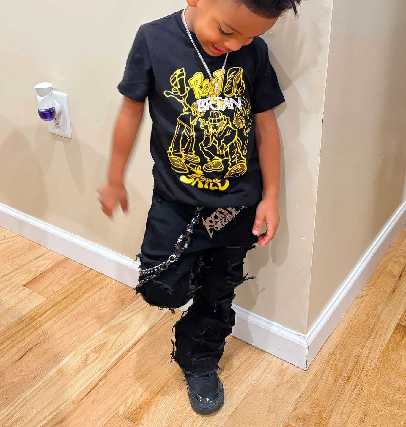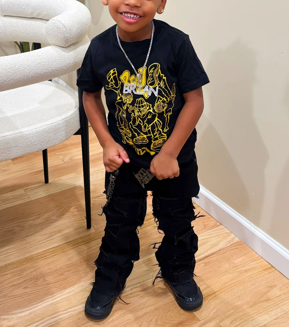 Custom Logo Two-Piece Set Print T Shirts Streetwear T-Shirt and Acid Wash Patchwork Ragged Denim Jeans Boys Clothing Sets
