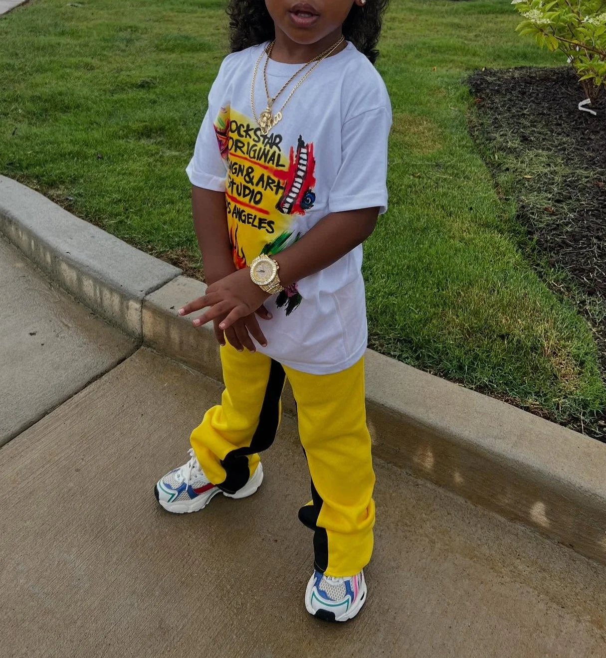 2026 Streetwear Fashion Custom Graphic Screen Printing Boxy Tee T Shirt Round Neck Tshirt and Sweatpants Boys Clothing Set