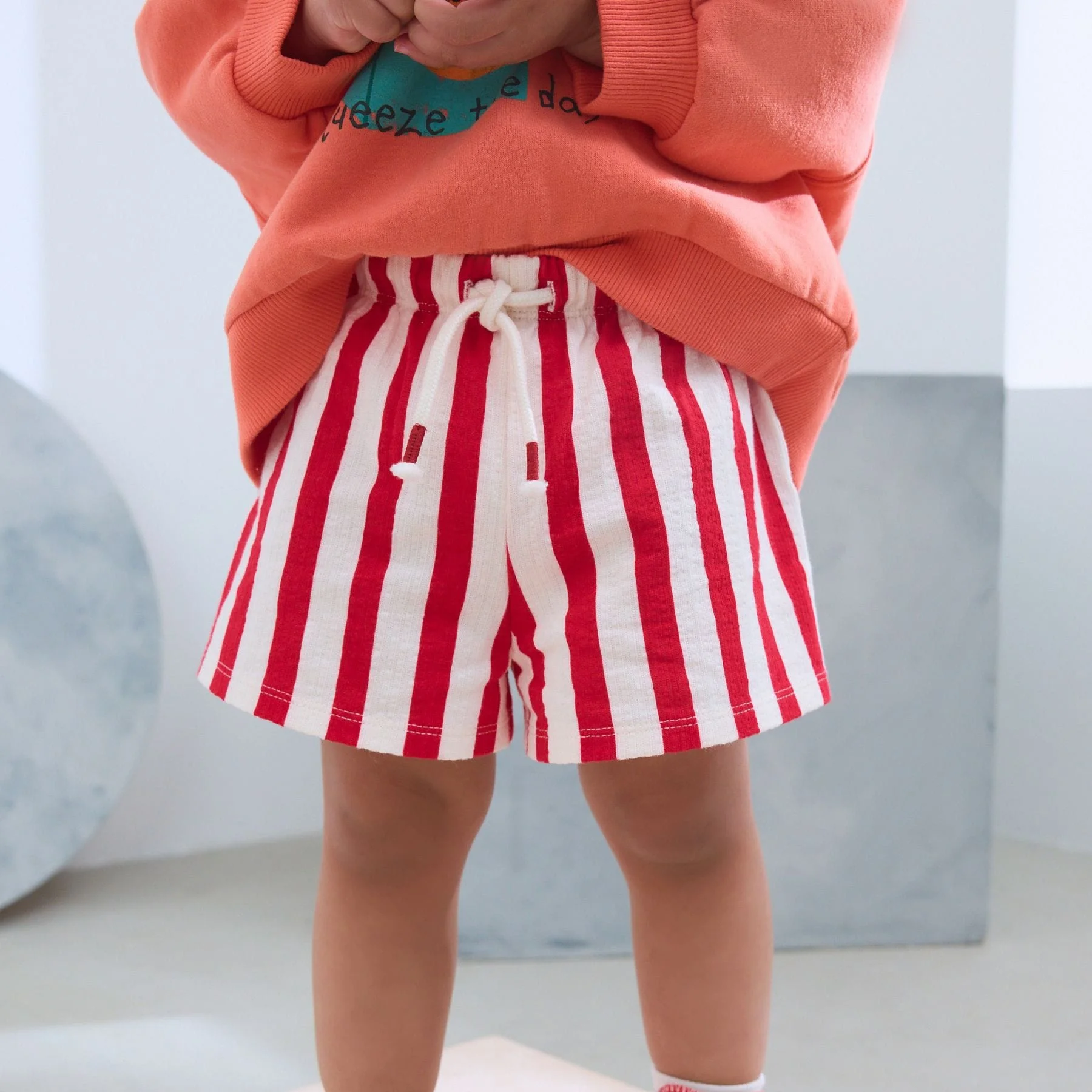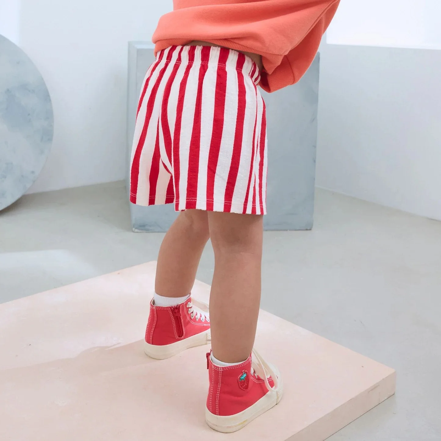 Wholesale Custom Logo Cute Baby Girl Fashion Clothes Summer Korean Style Oversize Vertical Red Stripe Shorts