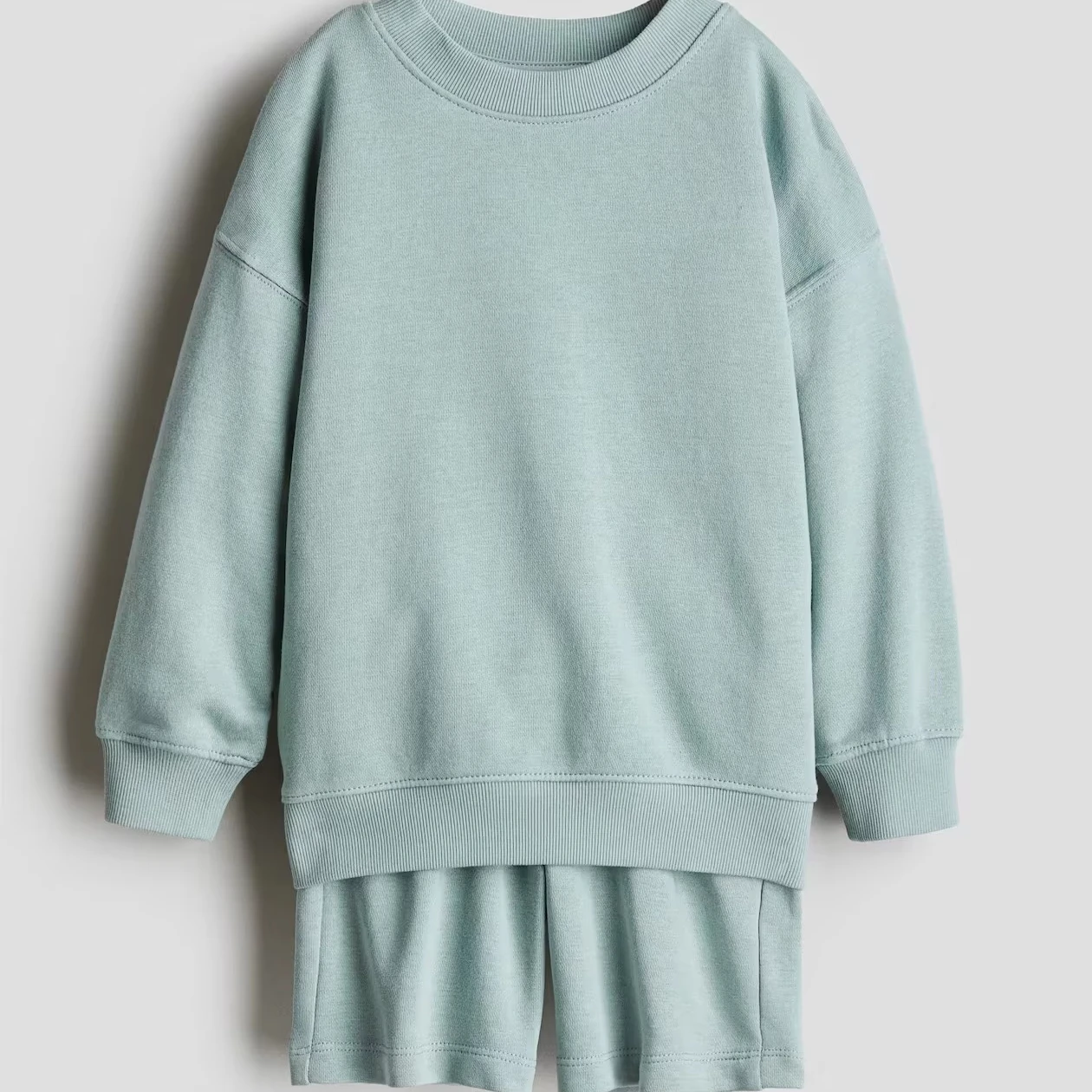 Custom Color Kids Unisex French Terry Jogger Sweatsuits Plain Child Crewneck Sweatshirt 2 Piece Tracksuit Baby Sweatshirt Set