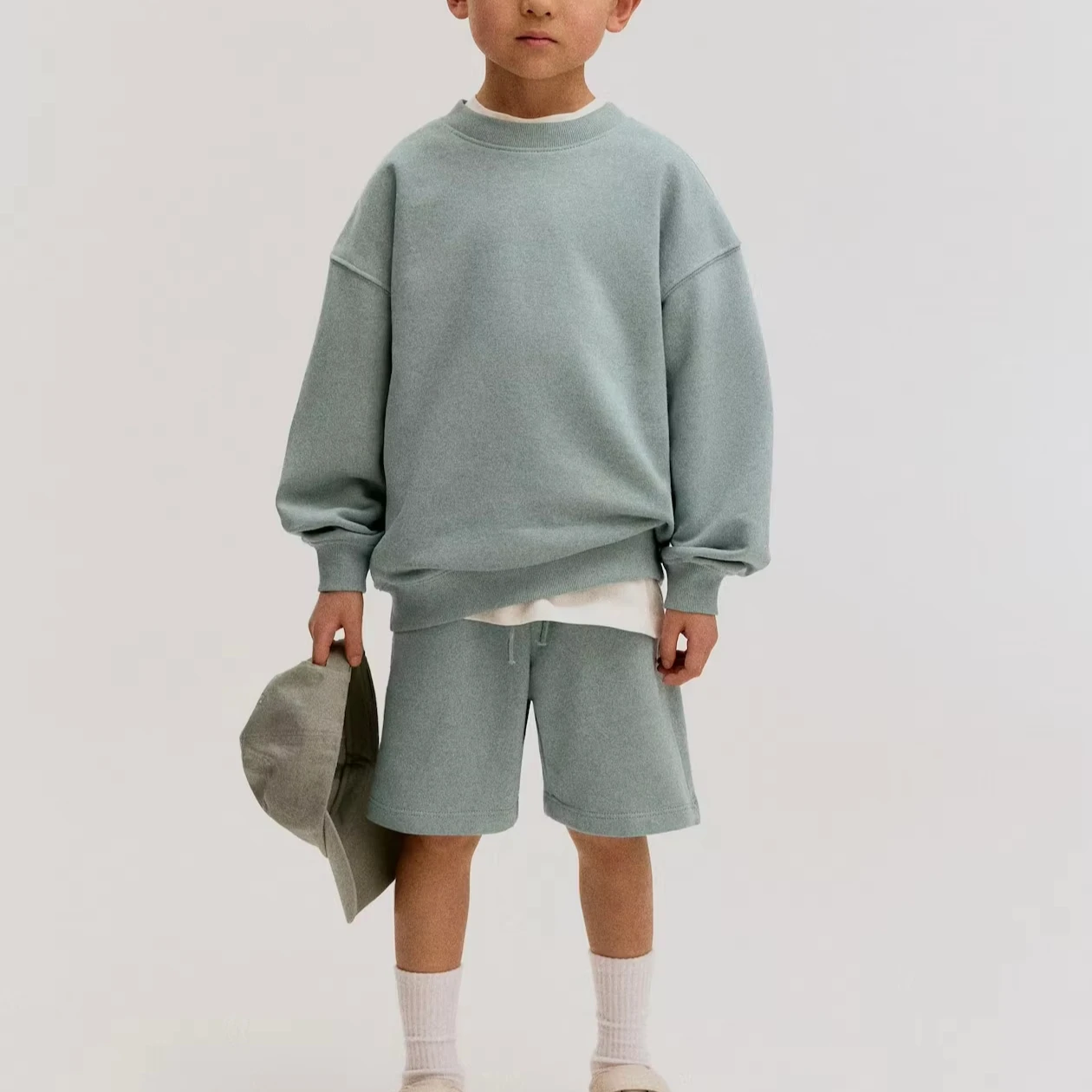 OEM Kids Apparel 340G Heavyweight Hooded Shorts Casual Sportswear for Children