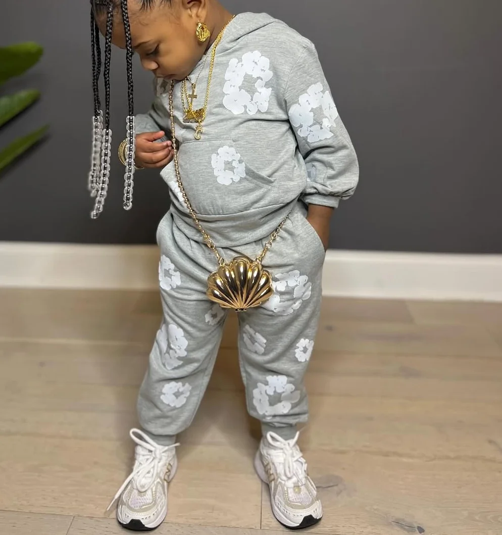 Wholesale Custom Embroidery Cotton Kids Hoodies Pants Set 2pcs Fleece Hoodie Sets Kids Clothing Girls Clothing Sets