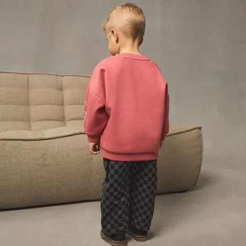 Fashion Custom Brand Design Logo Pullover Sweatshirt Checkered Trousers Pants Joggers Tracksuit Boys Clothing Sets