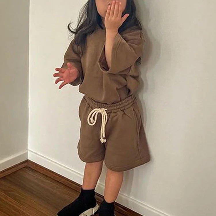 OEM Kids Apparel 340G Heavyweight Hooded Shorts Casual Sportswear for Children