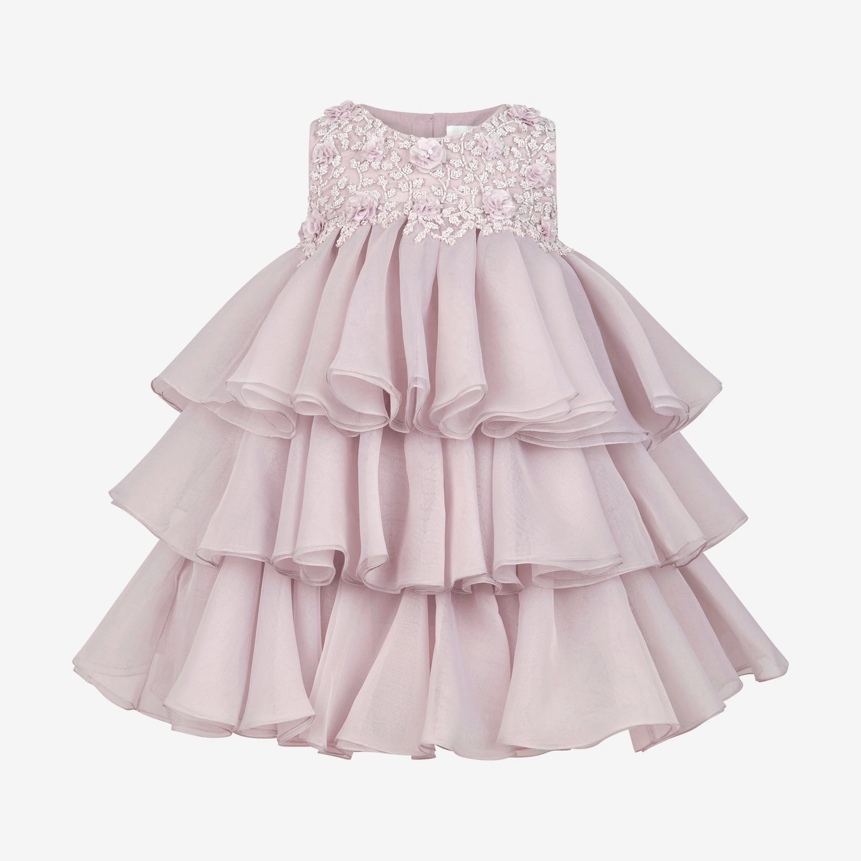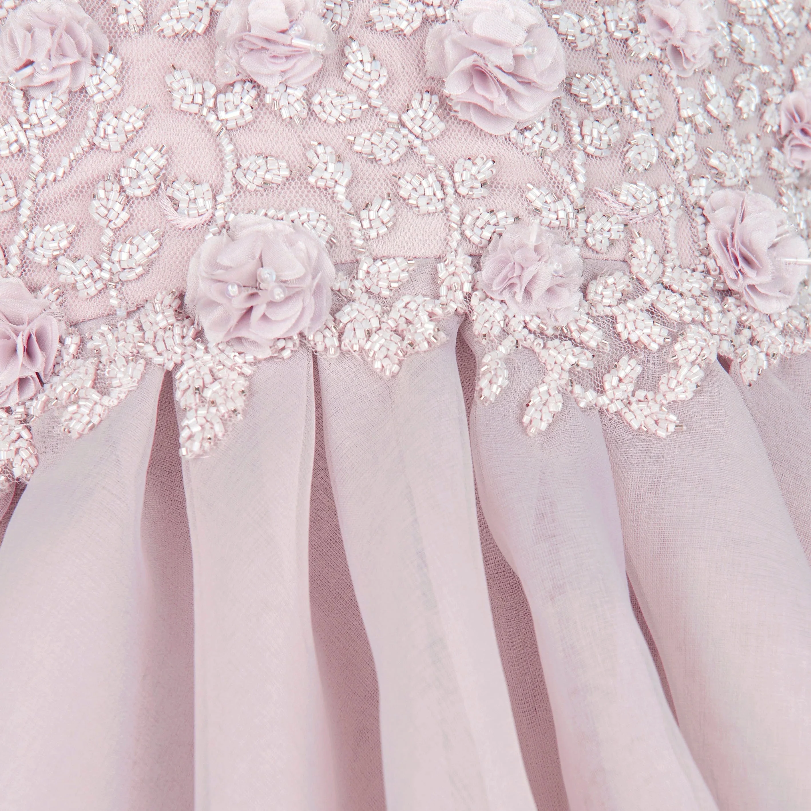 Wholesale Custom High Quality Embroider Beads Kids Pink Princess Dress for Girl