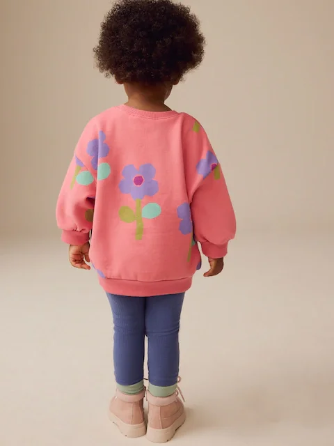 Autumn Casual Cute Girl Outfit Pure Cotton Print Round Neck Trendy Unisex Pullover Sweatpants Set Kids Clothing