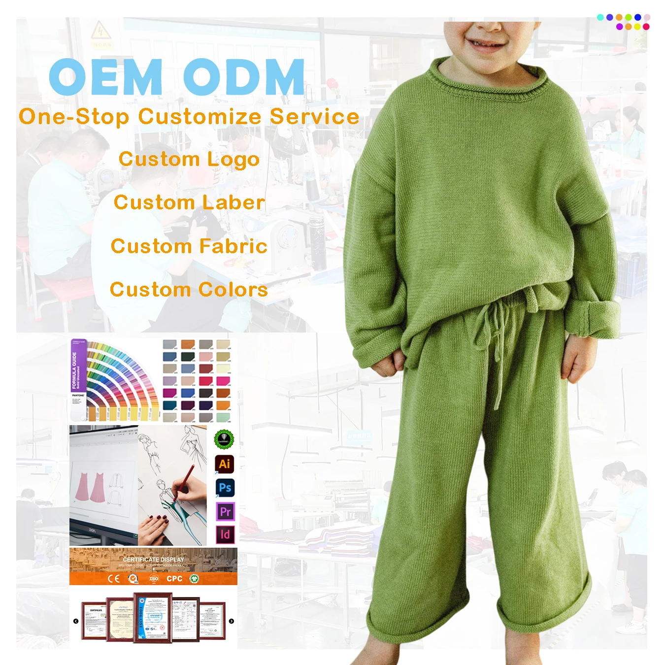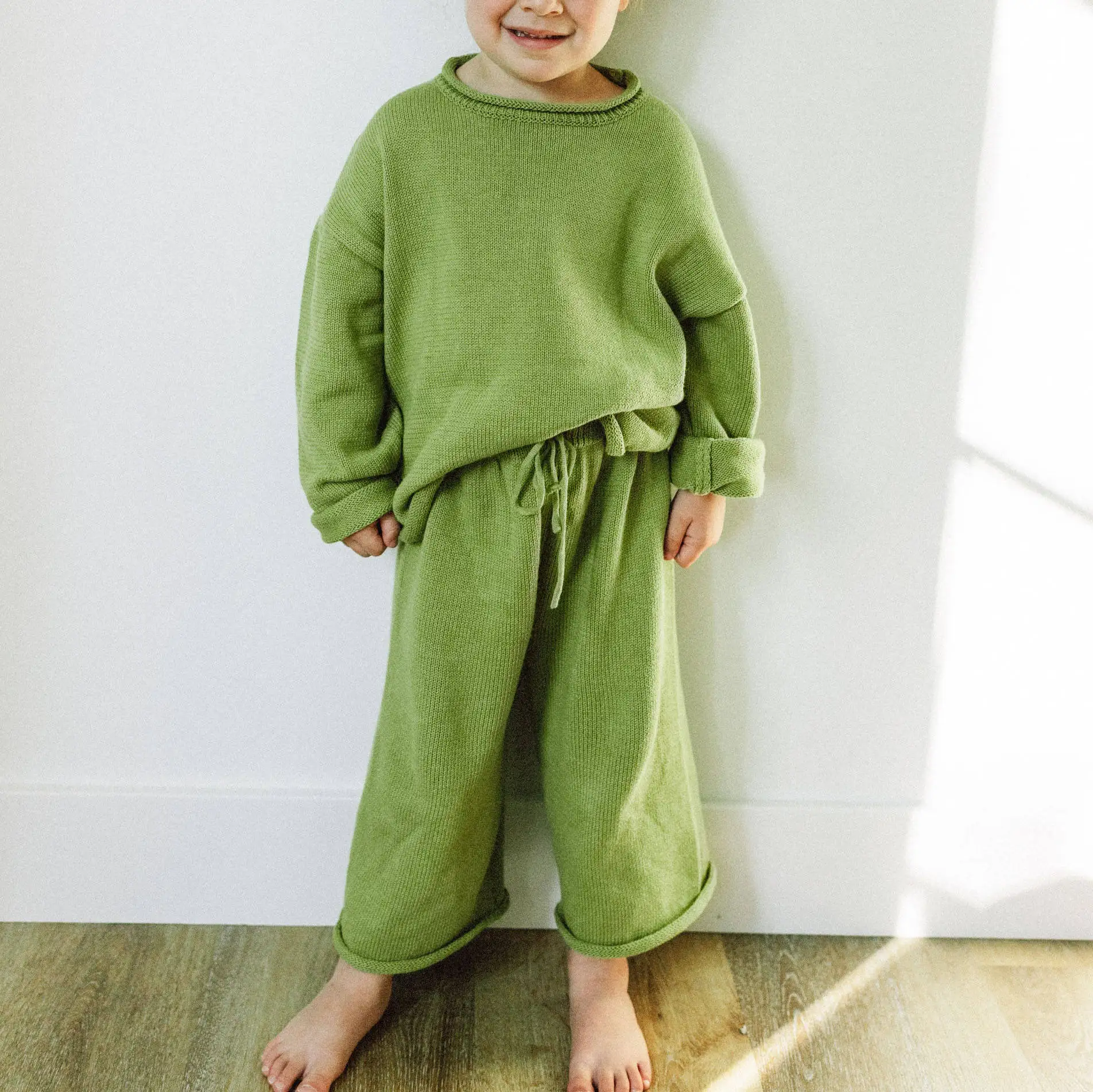 Wholesale Custom Printing Soft Basic Casual Blank O Collar 2 Piece Knit Long Sleeve Pullover Wide Leg Pants Kids Outfits