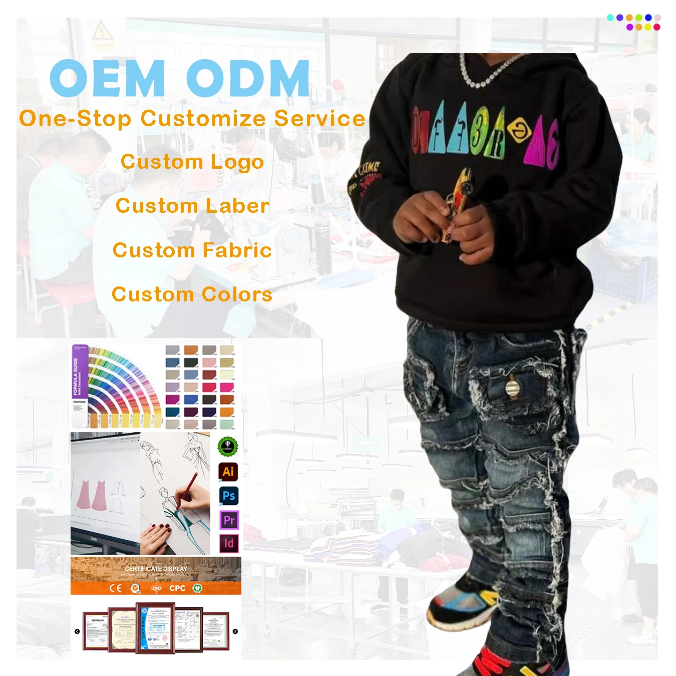 Custom Garment 2 to 14 Years Ripped Stack Jeans for Kids Custom Skinny Clothes for Boys Toddler Design Denim Pants Children