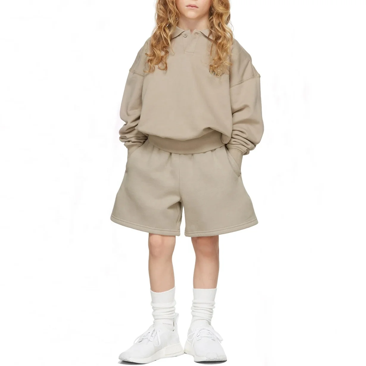 Wholesale Blank Toddler Baby Sweat Suit Custom Brand Polo Sweatshirts Shorts Set Unisex Kids Short Sweatsuit