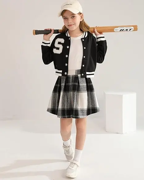 Oem Kids Sports Tracksuit Clothing Set Kids Clothing Set Baseball Outfit Baseball Jacket and Pleated Skirt Girls Clothing Set