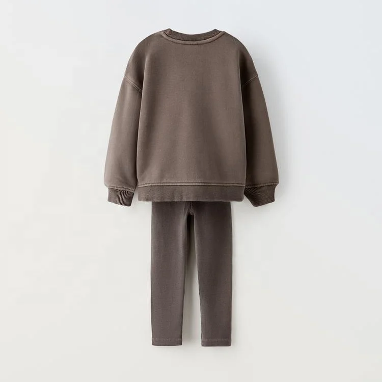 Wholesale Solid Blank Terry Cotton Jumper Leggings Kids Sweatsuits Baby Girl Two Piece Set