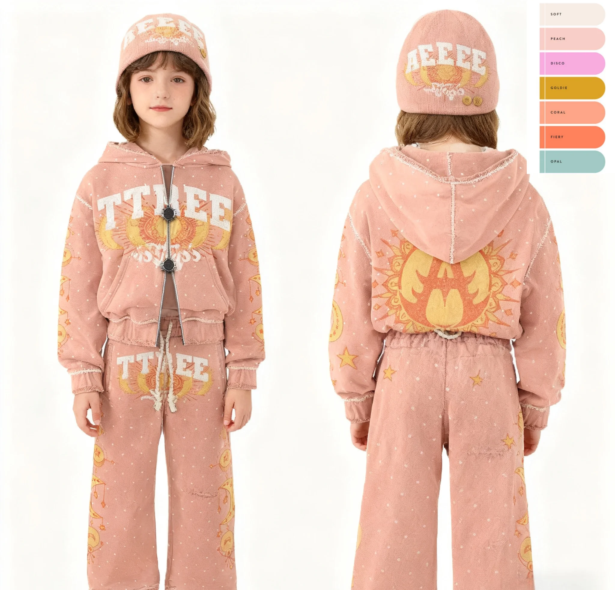 Custom Kids Zip up Distressed Acid Wash Rhinestone Oversized Cropped Heavyweight Sweatpants and Hoodie Hats Set Kids Tracksuit