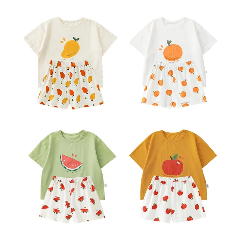 2022 Girls Summer Clothes Fruits Printed T-shirt and Shorts Girls Clothing Sets Cotton Baby Girls Summer Outfit