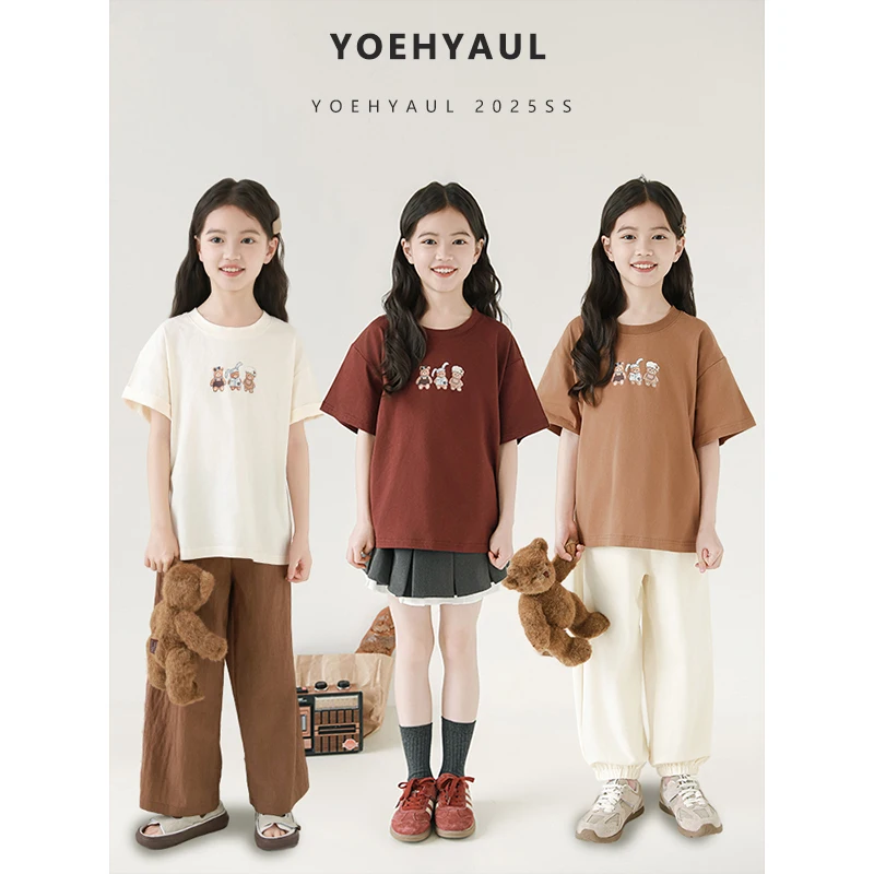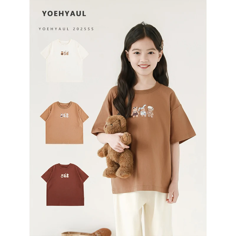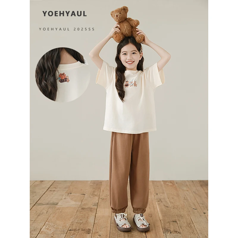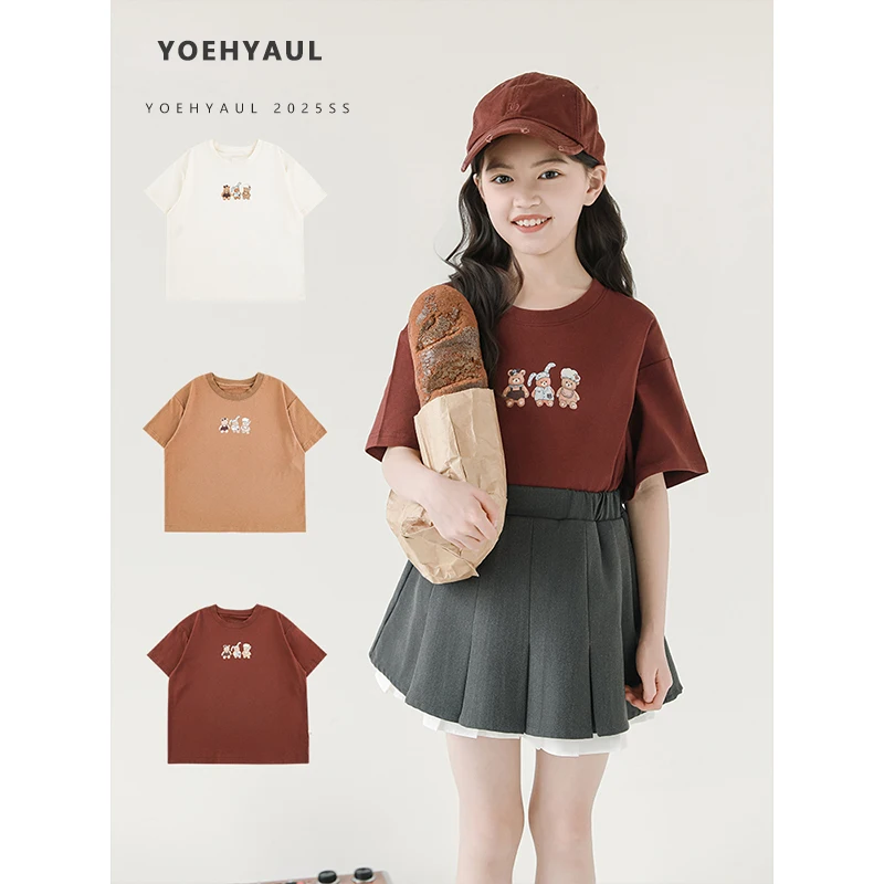 YOEHYAUL CD1341 4-15Y Big Girls Toddler Tshirt for Children 100% Cotton Short Dropped Shoulders Kids T-shirt Cotton
