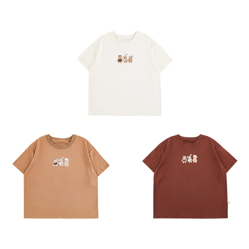 Girls Two Piece Outfit Customizable Cute T Shirt with 3D Bear Embroidery and Lace Trim Skirt Summer Apparel